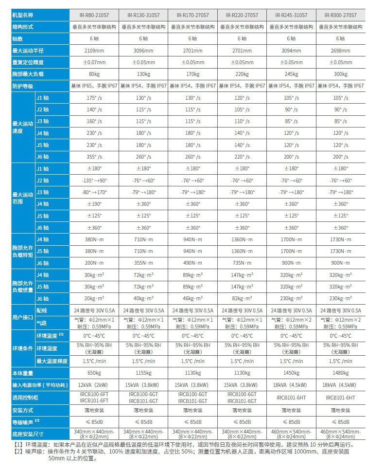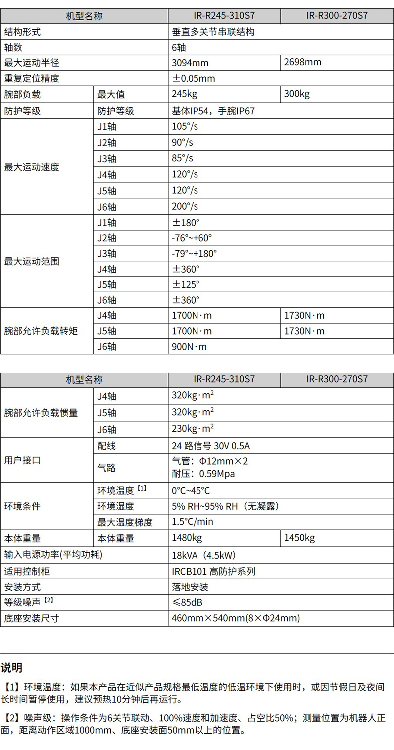 防护等级:基体IP54,手腕IP67