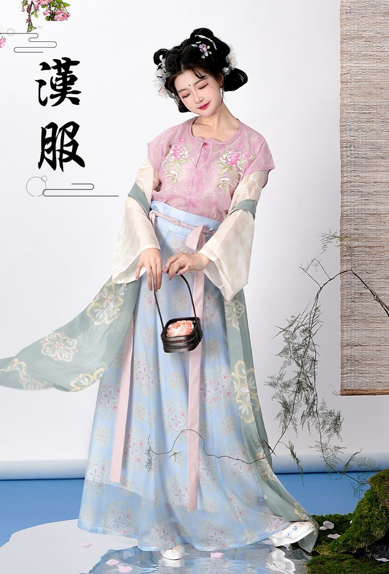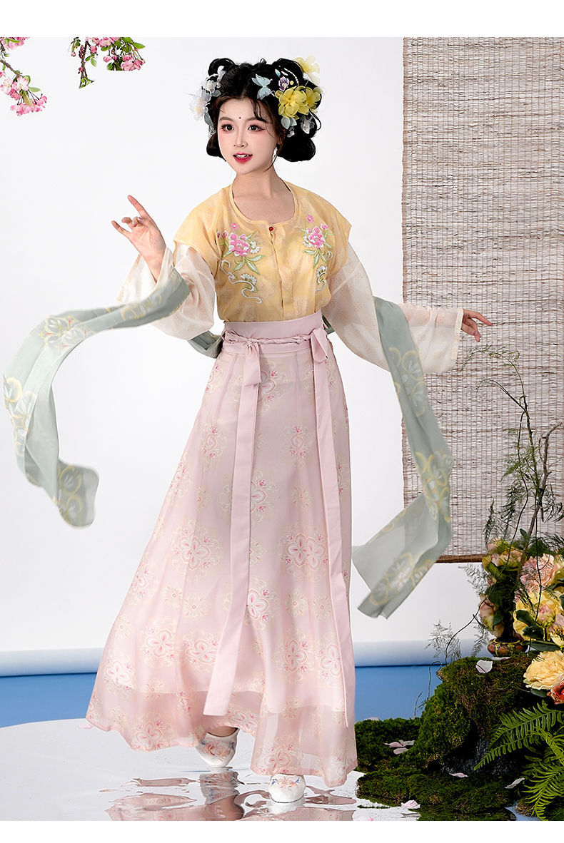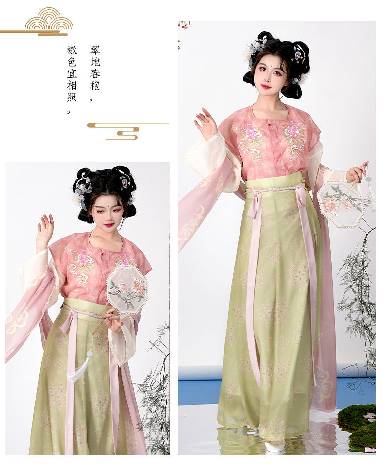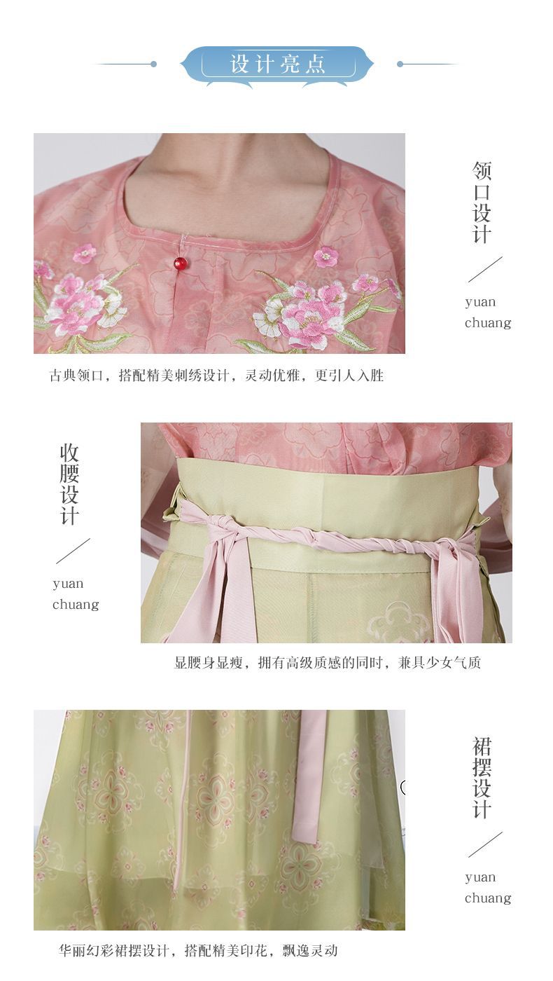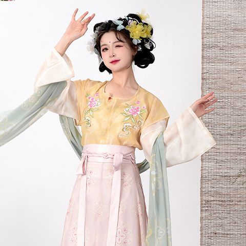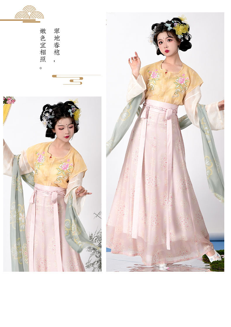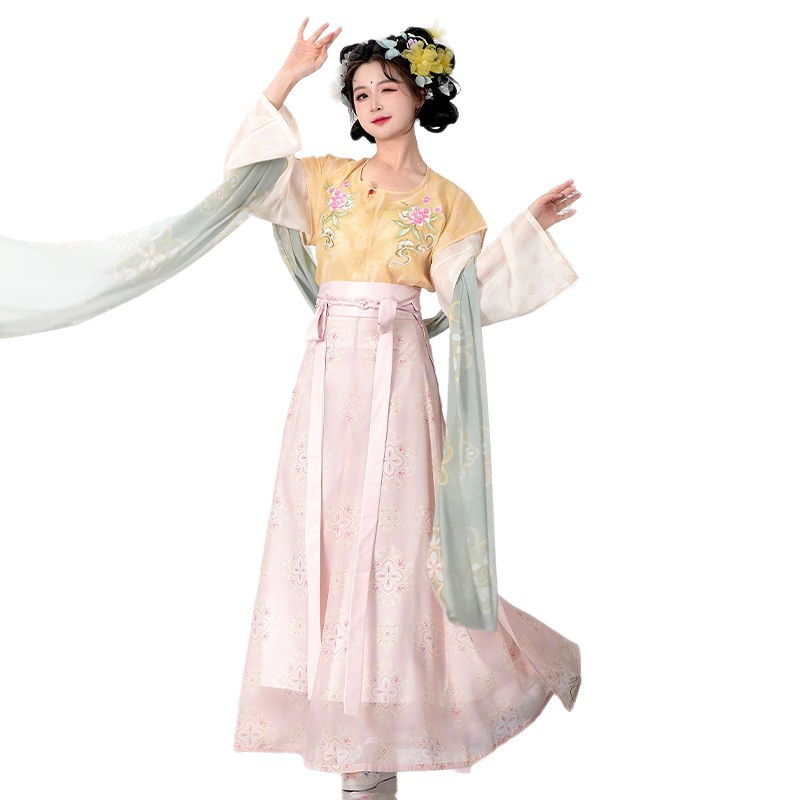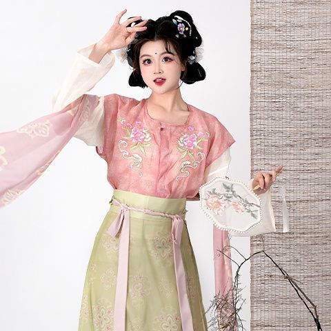 Lingxi Pavilion [Shao Hua] Оригинальная рубашка с круглым вырезом в стиле Тан с вышивкой Ханьфу и восьмипанельной юбкой длиной до талии для повседневной носки весной и летом.