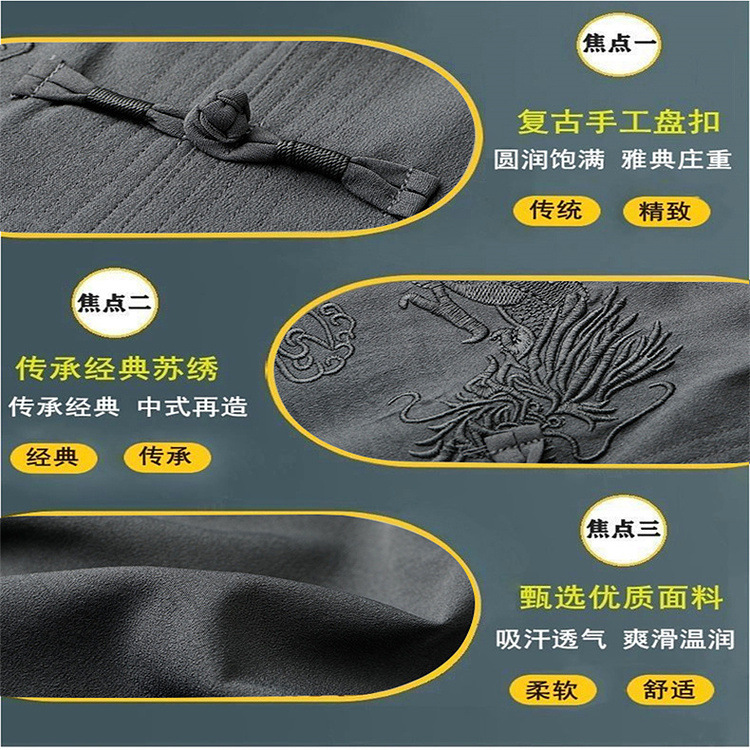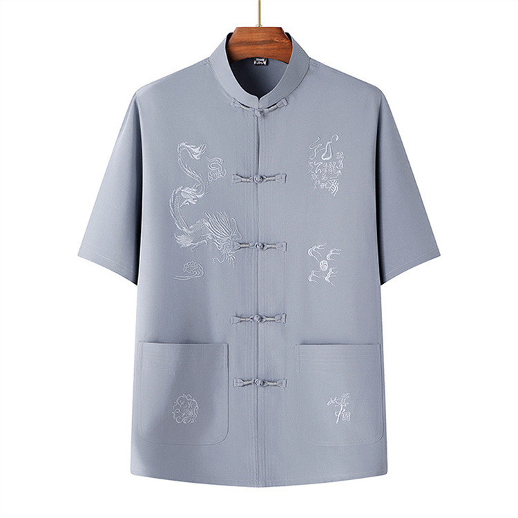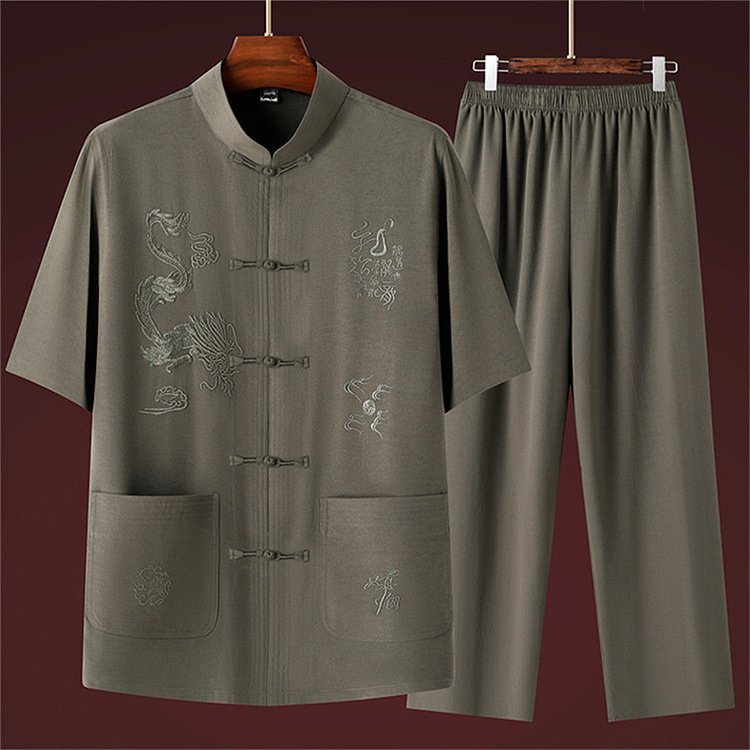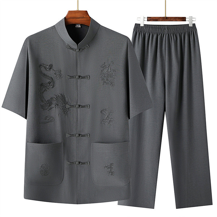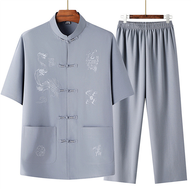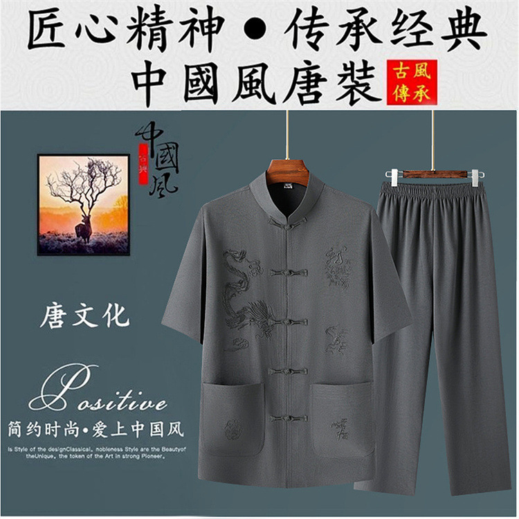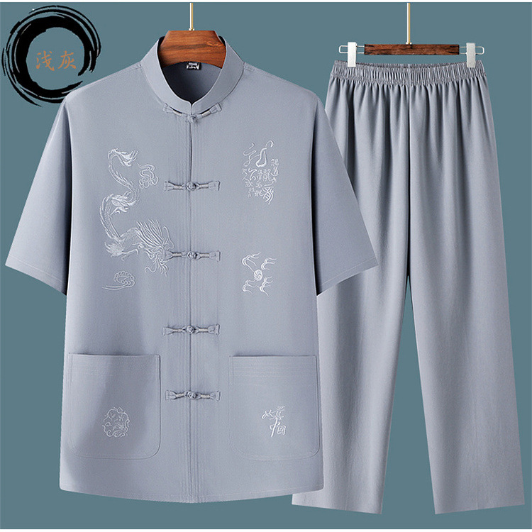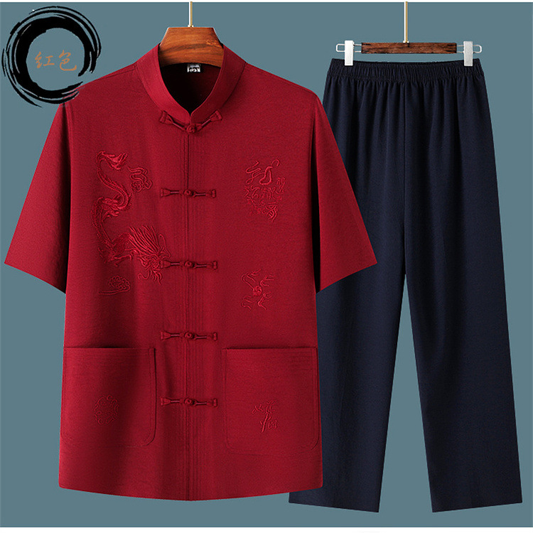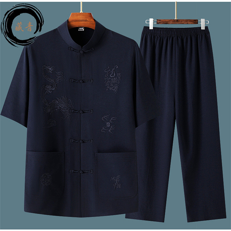 Летний новый китайский стиль рубашка летний мужской костюм футболка для среднего и пожилого возраста короткий рукав комплект из двух предметов
