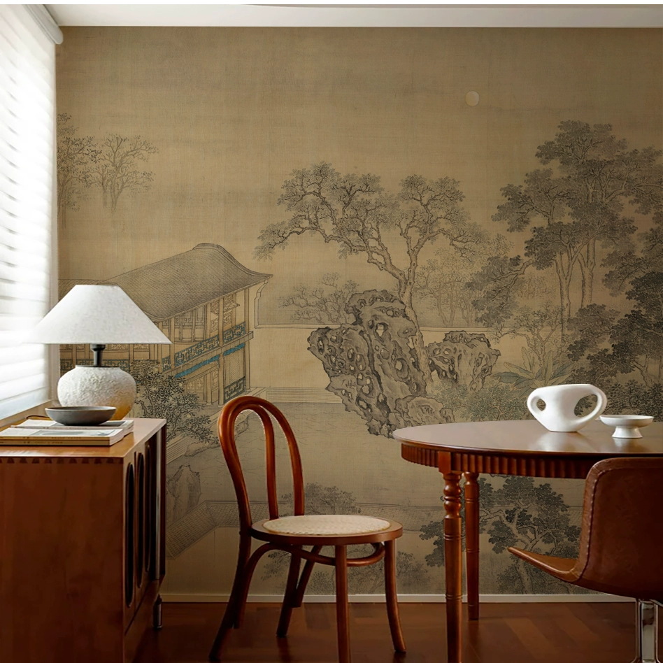 Настенное покрытие 3D стерео песня стиль эстетический пейзаж фон настенное покрытие украшение гостиной новый китайский стиль спальня настенное покрытие фреска