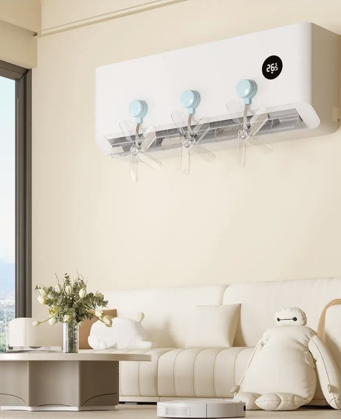 Ветрогенератор небесно-голубой; Вентилятор воздуховода кремово-желтый; Вентилятор воздуховода белый