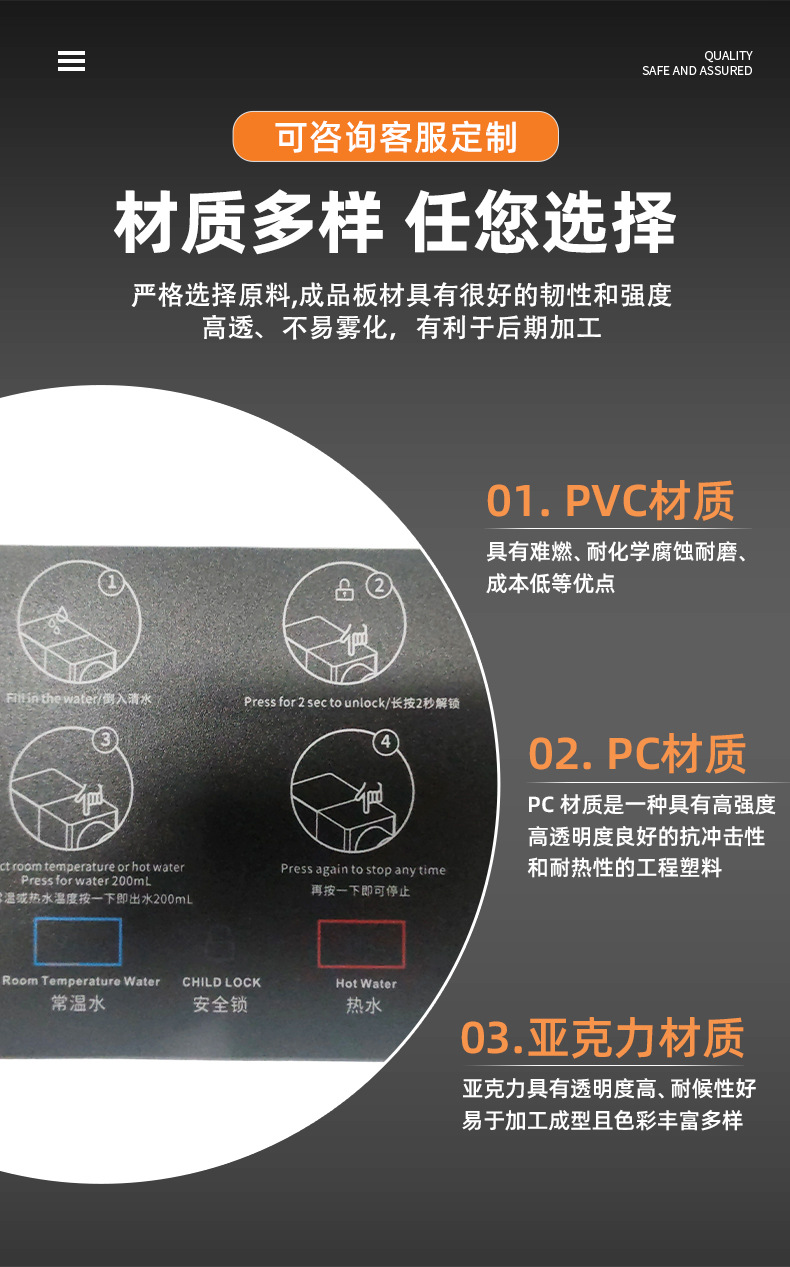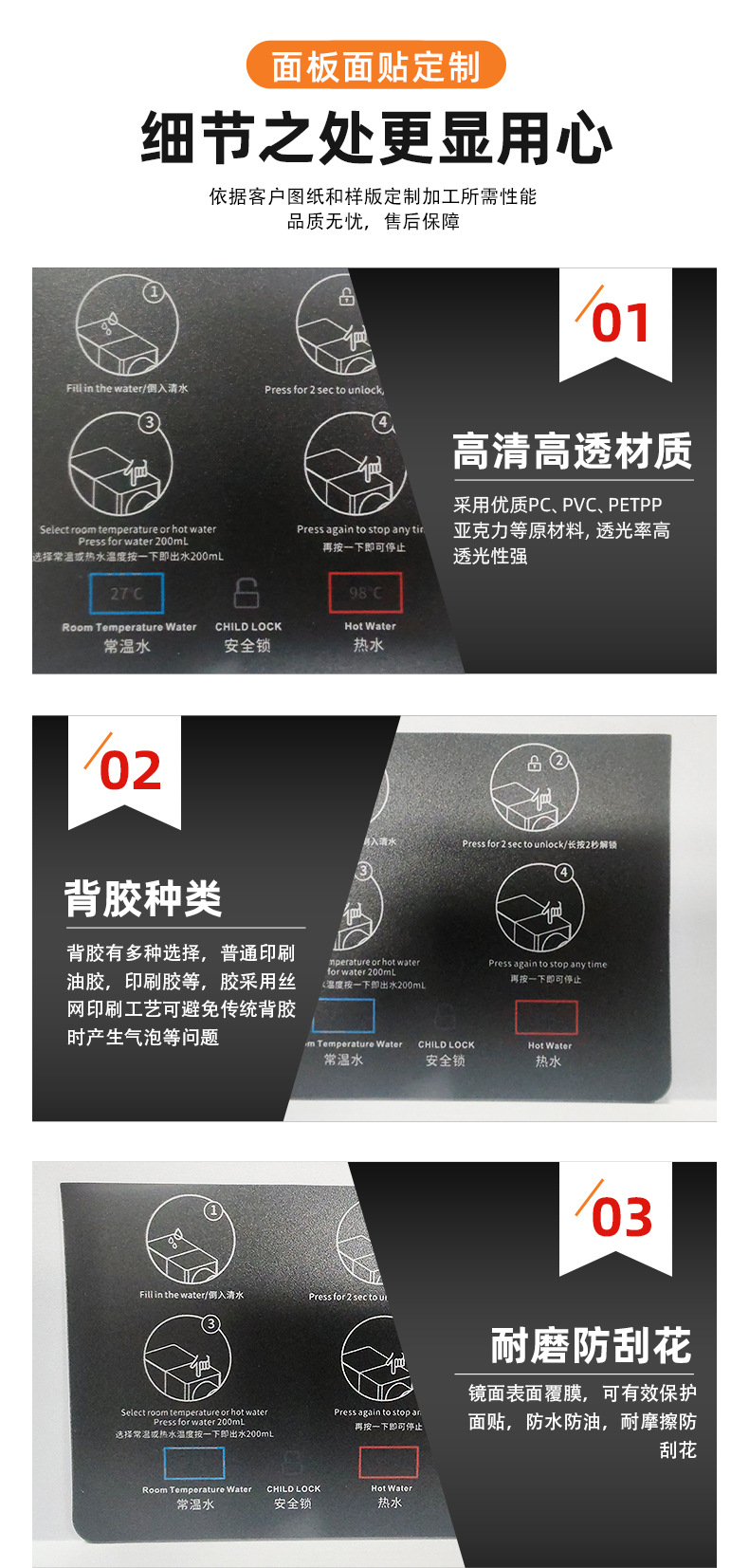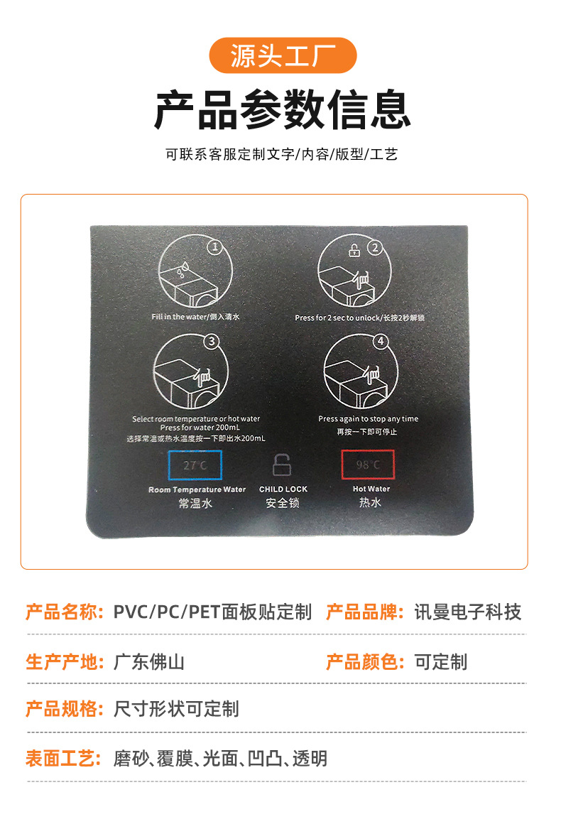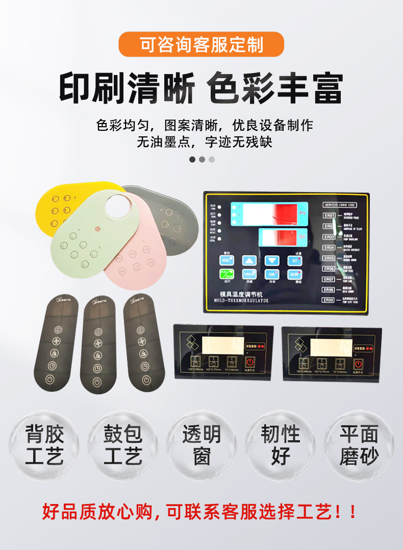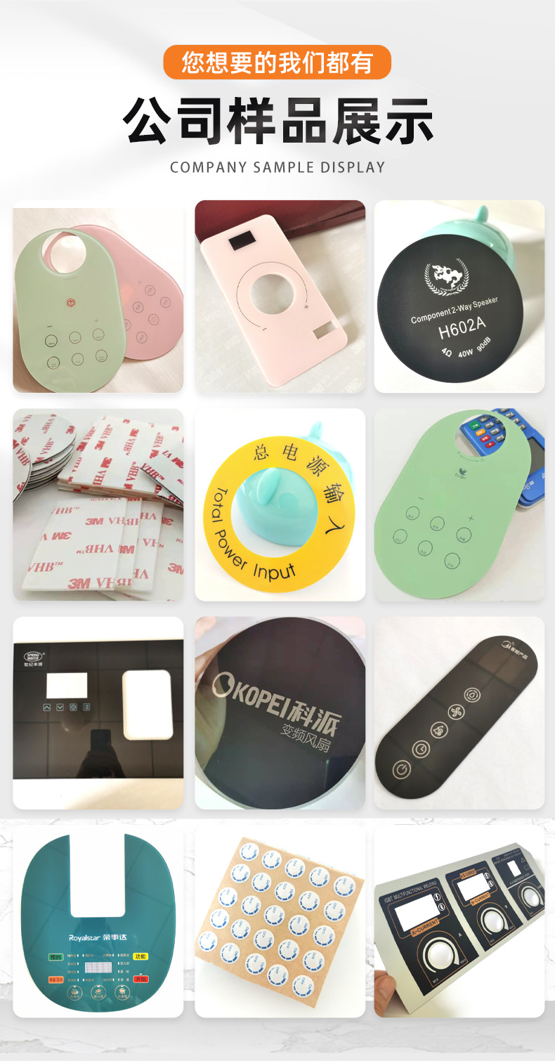 可定制各类触控薄膜开关、亚克力面板、鼓包面贴