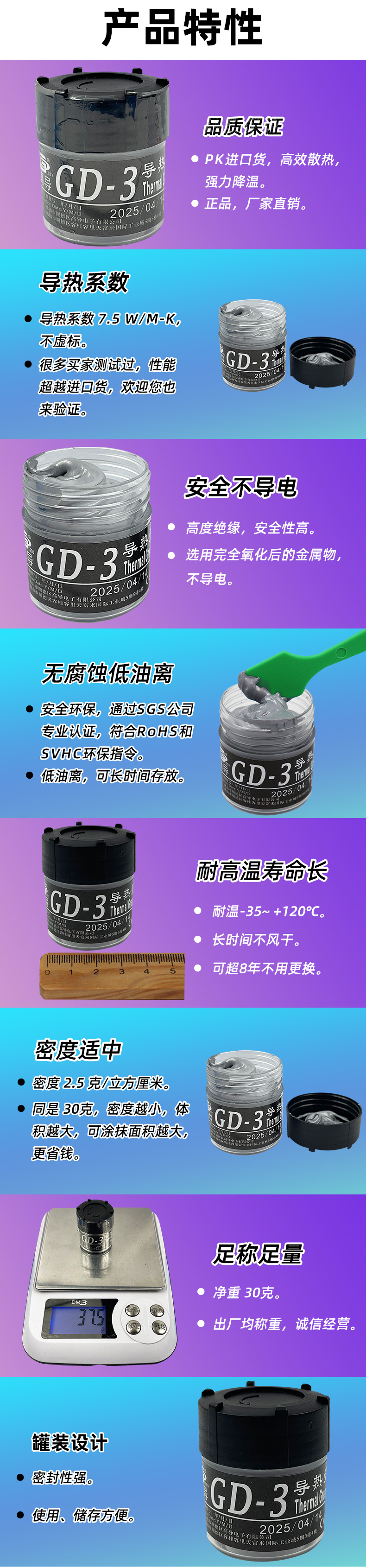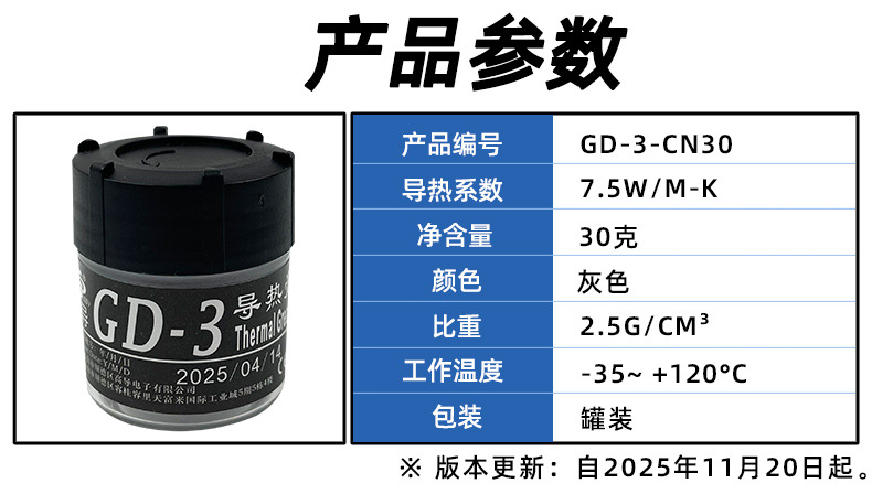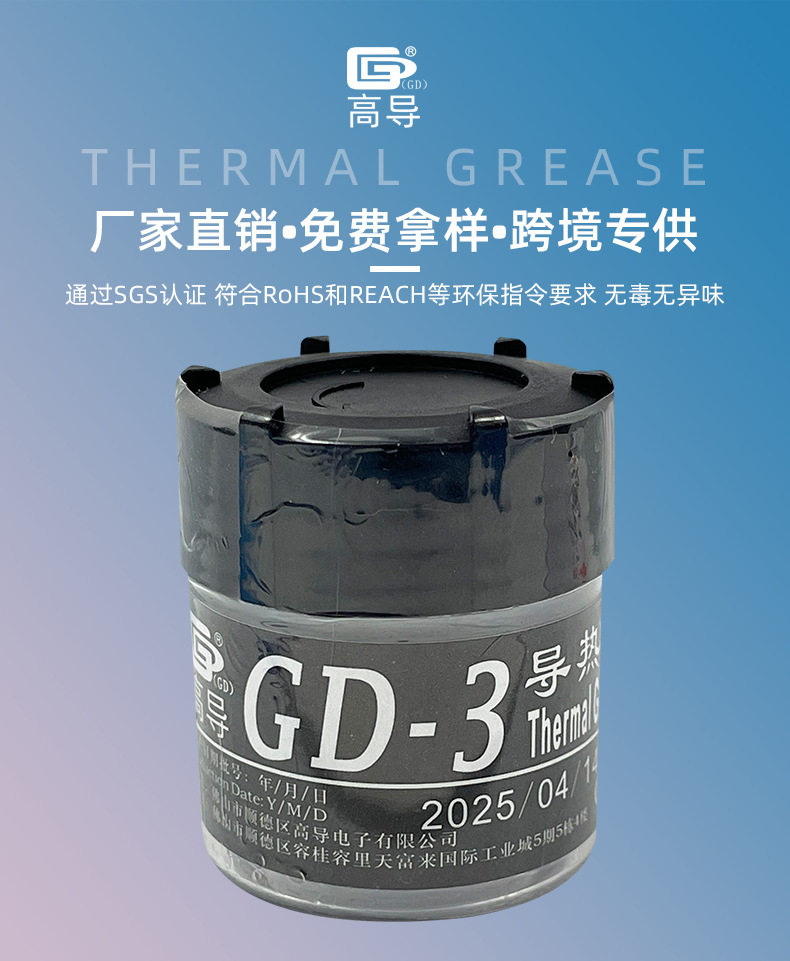 Высокопроводящая термопаста GD-3 серого цвета для охлаждения процессоров/графических процессоров, вес нетто 30 грамм, в банке, CN30