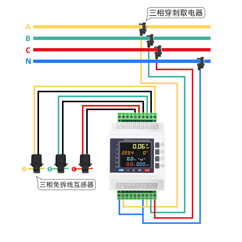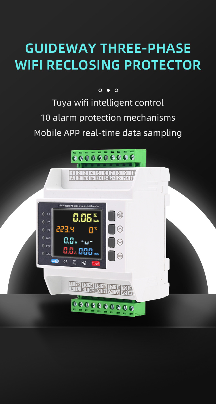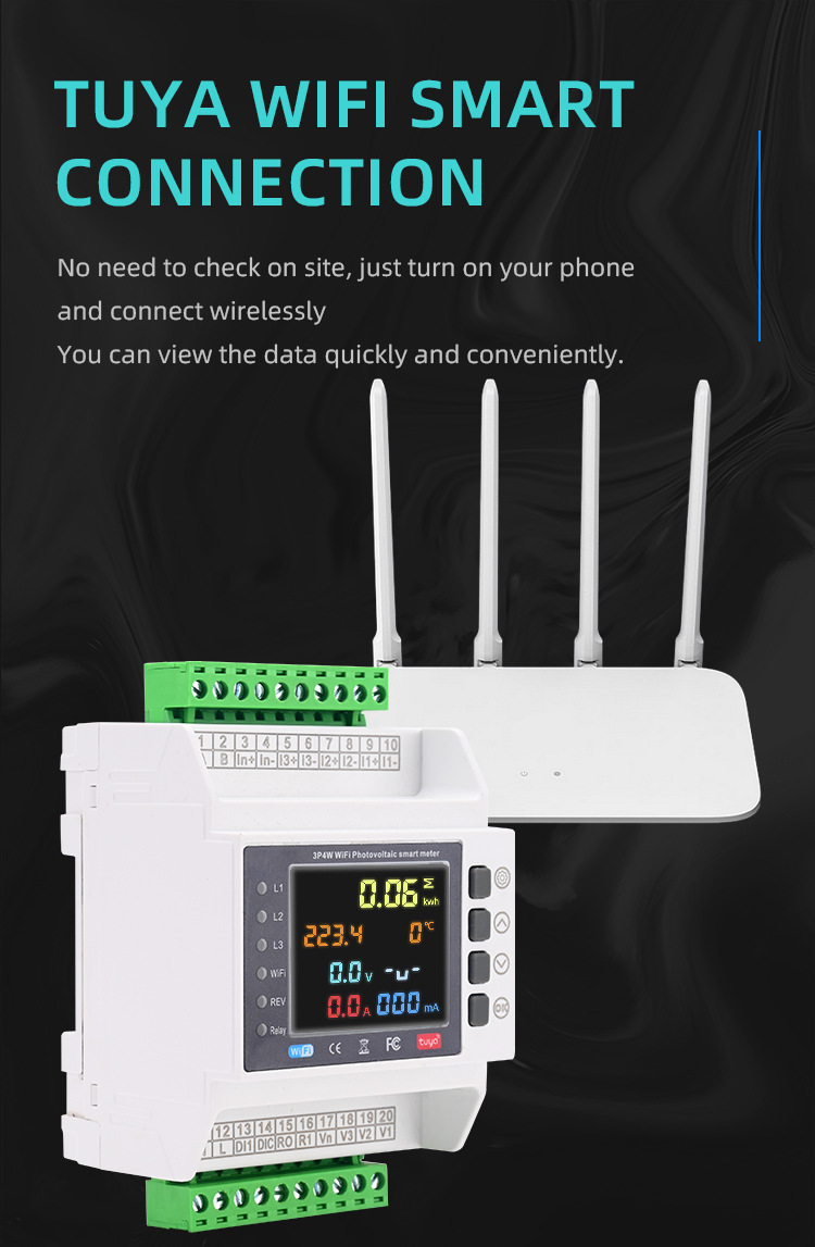 Трехфазный четырехпроводный вторичный электрический счетчик, интеллектуальный Wi-Fi, счетчик взаимной индуктивности Tuya, защита от перегрузки по току, перегрузки по напряжению