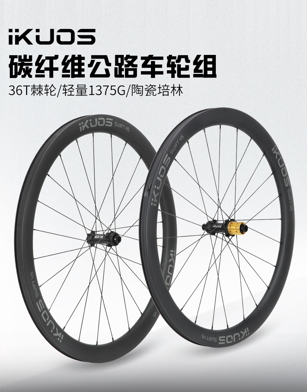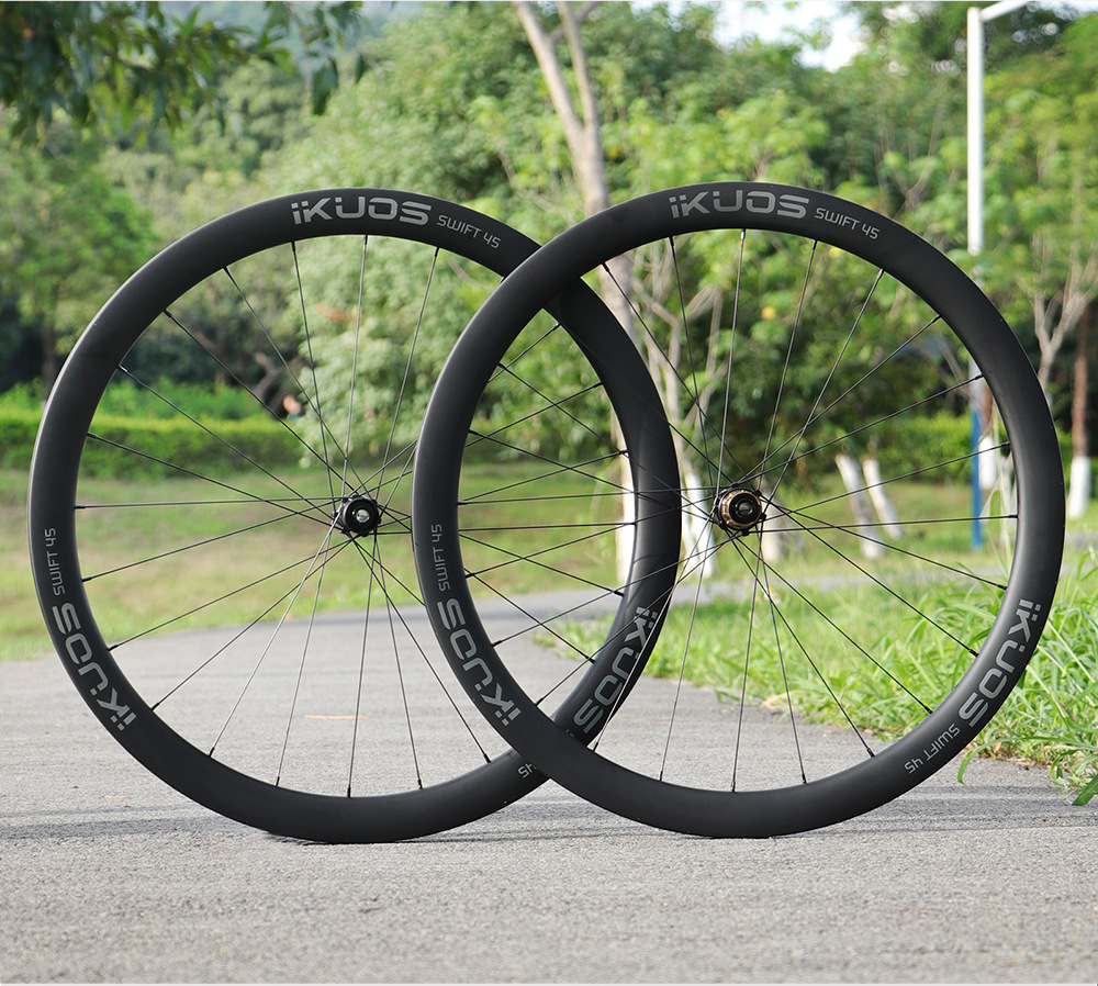 Комплект колес IKUOS из углеродного волокна, дорожный велосипед, 45 мм, керамический подшипник, вал, карбоновый колесный механизм с зубчатой трещоткой, карбоновый нож, ступица