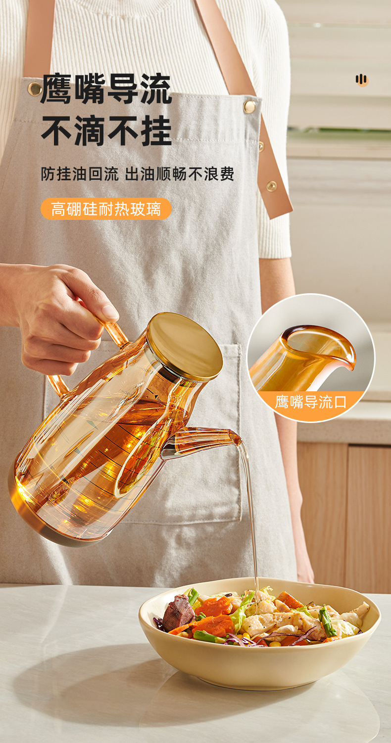 Стеклянная масляная кастрюля, кухонная бытовая бутылка для масла, соевый соус, уксус, приправа, контейнер для масла в бутылке, антипригарный большой масляный резервуар из нержавеющей стали