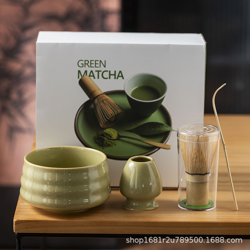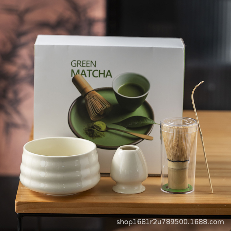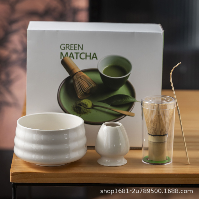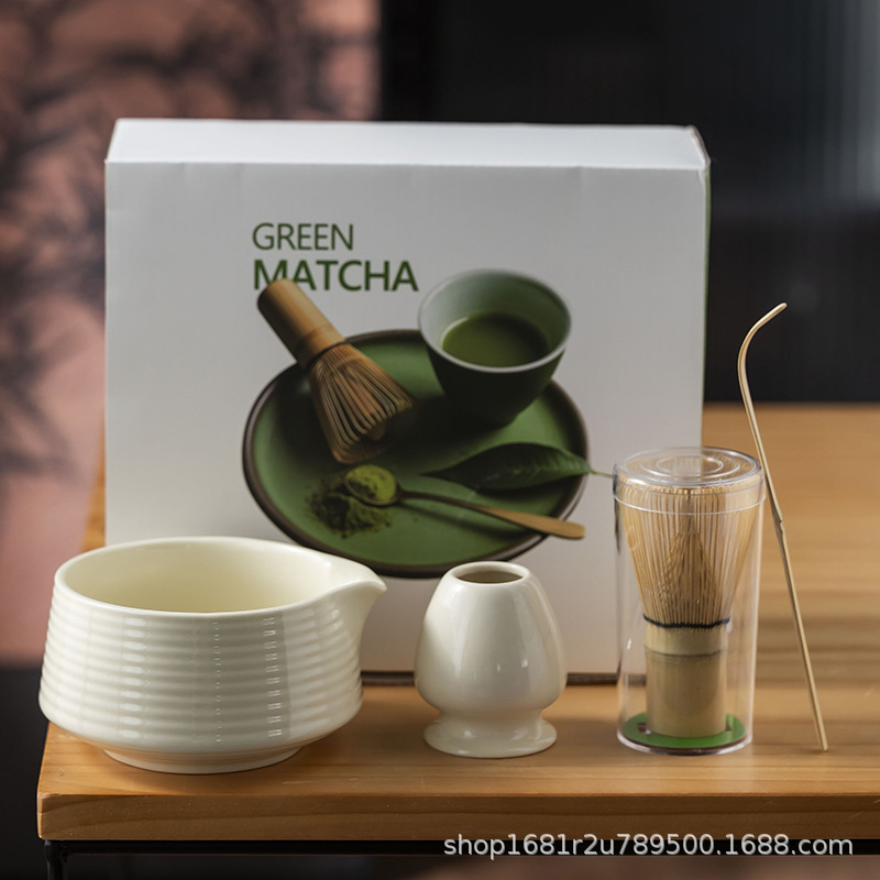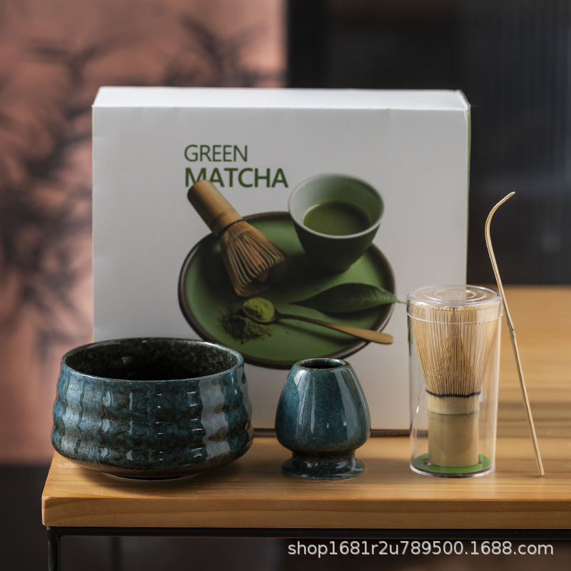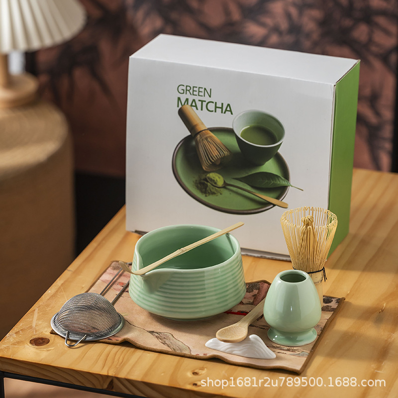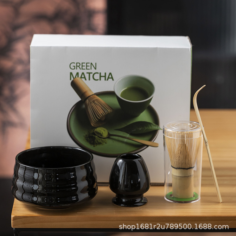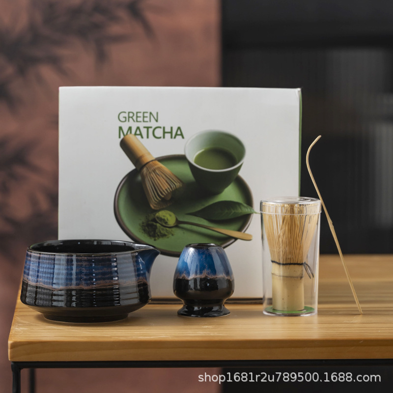 Новый японский чайный набор для матча с чайным венчиком, чайной ложкой, чайной чашей и чайными принадлежностями в красочной коробке.