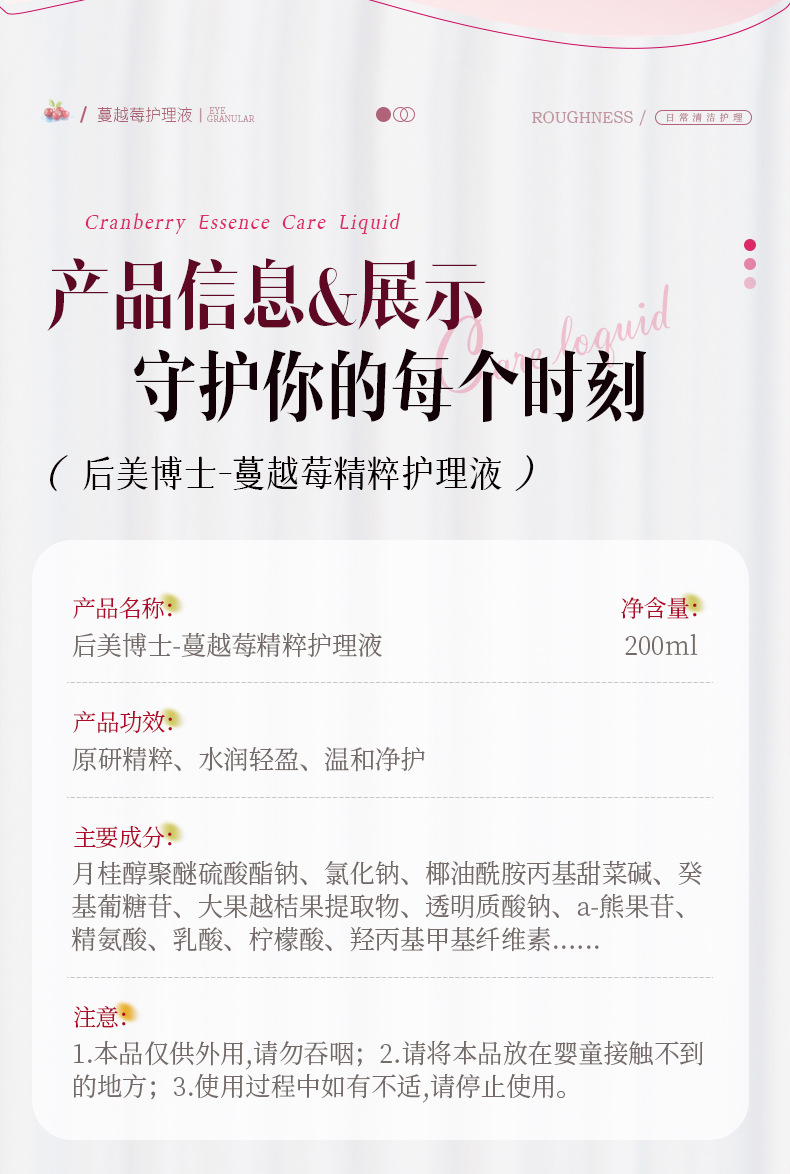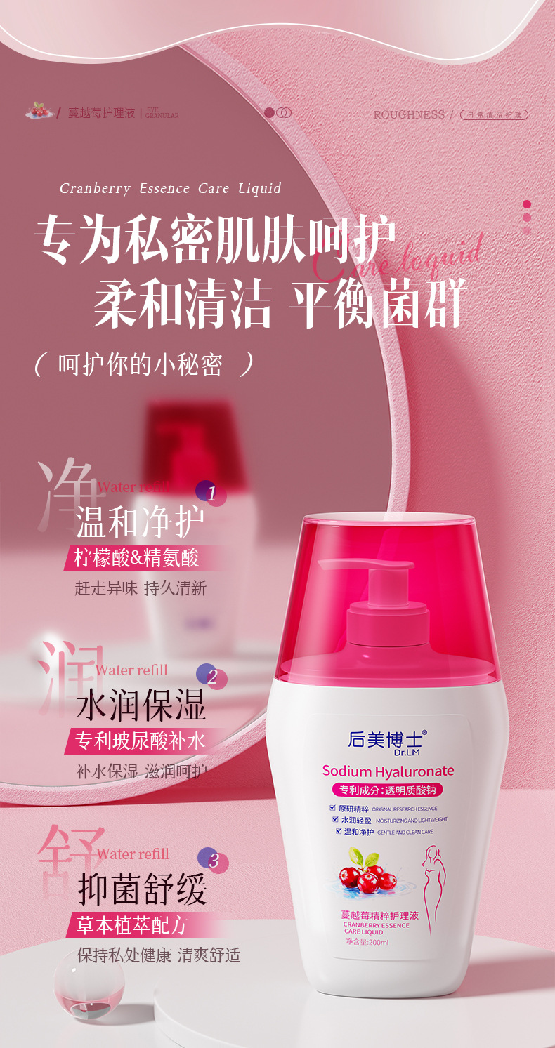 Dr. Houmei Женская специальная личная гигиена Раствор для ухода за клюквенной эссенцией Очищающая жидкость очищает в интимной зоне и удаляет запах