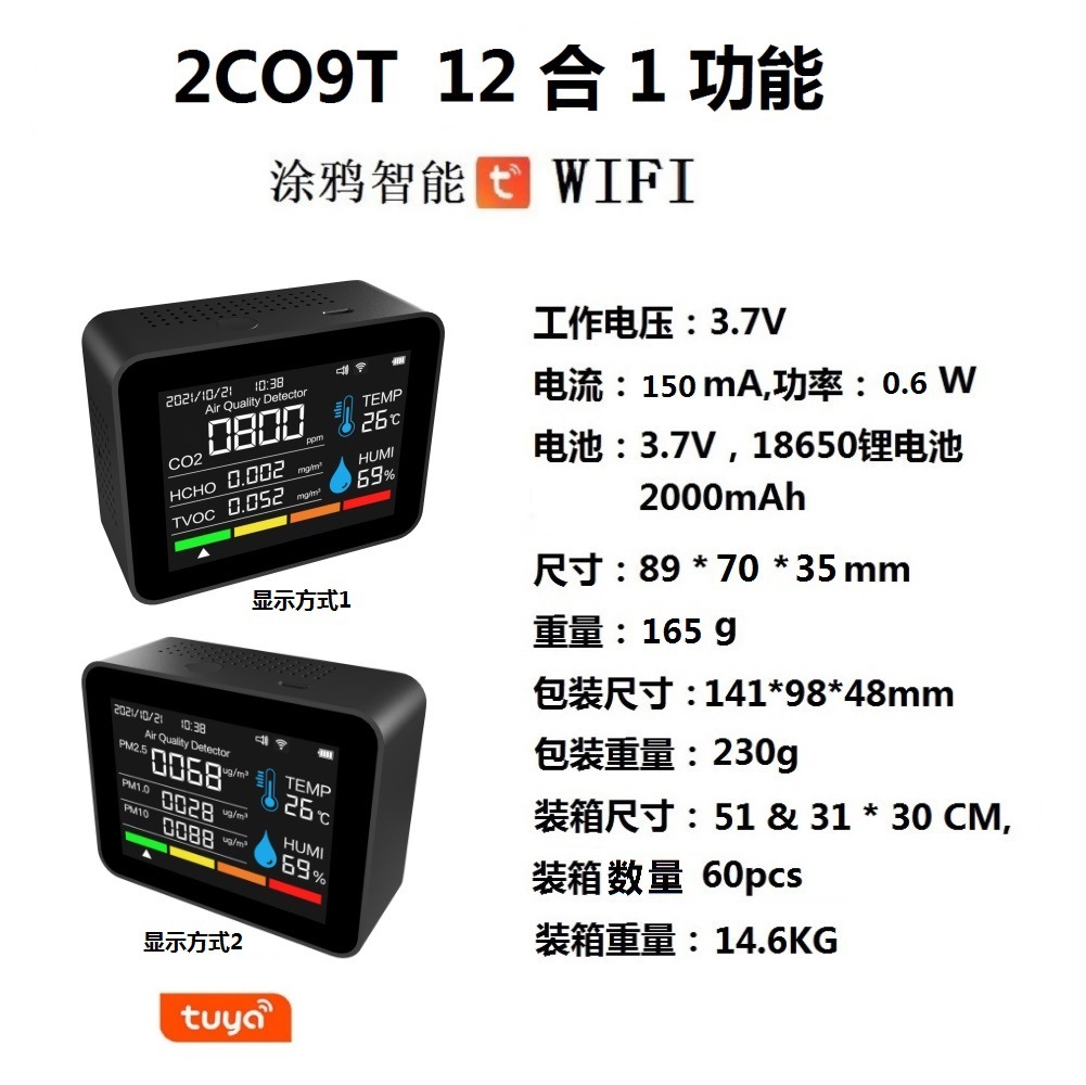2CO9T, 12合1 涂鸦智能 WIFI APP 空气质量检测仪