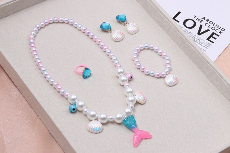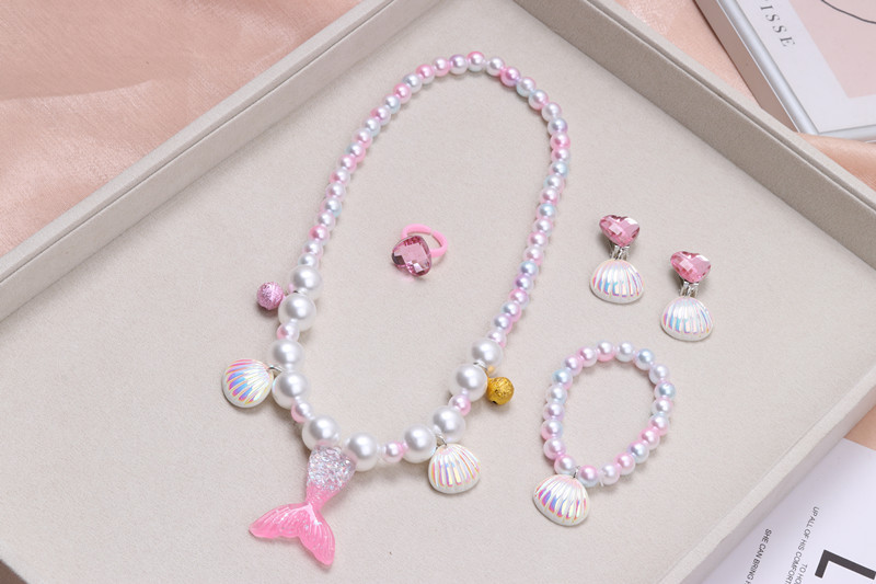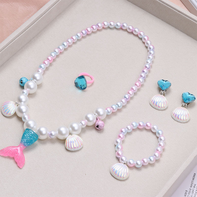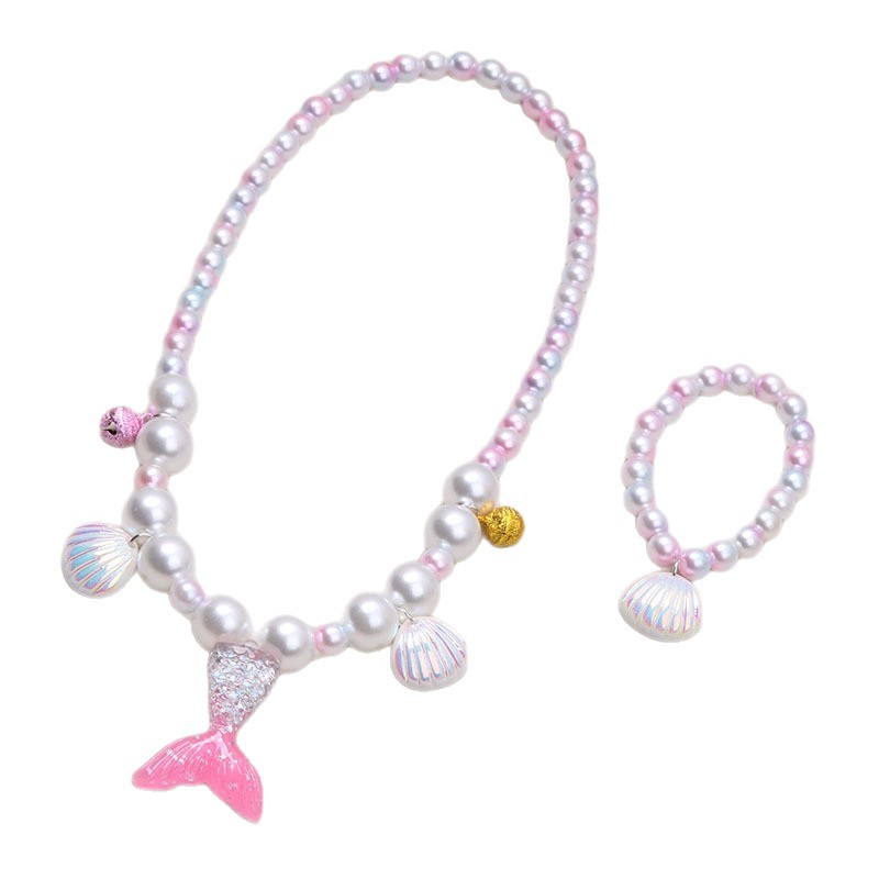 Ювелирные изделия для девочек, принцесса, ювелирные изделия для маленьких девочек, аксессуары, ожерелье с хвостом русалки, браслет, комплект для детей