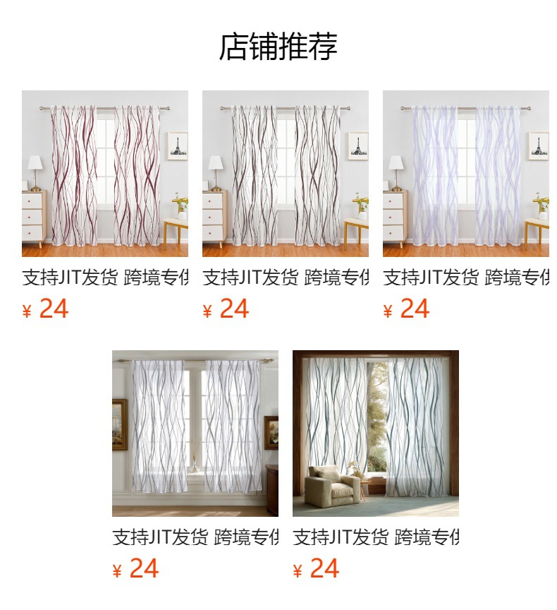 JIT cross-border специализируется на прямых продажах от производителей цифровых принтованных штор в скандинавском стиле с абстрактными линиями и полупрозрачных штор в французском стиле.