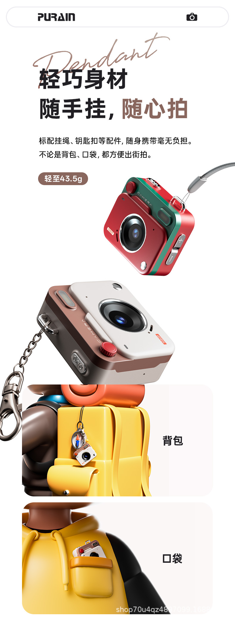 Цветная упаковка + камера + руководство + ремешок + брелок