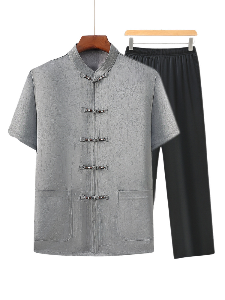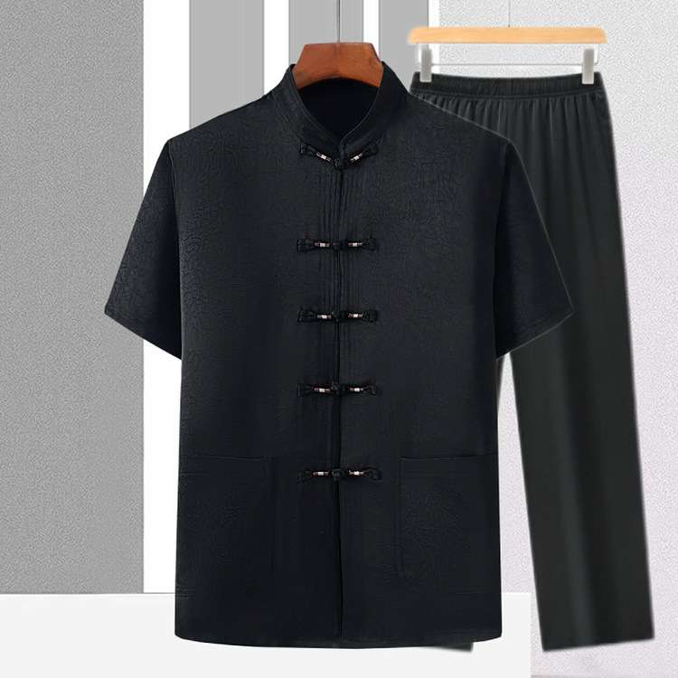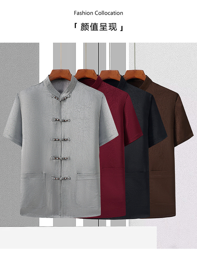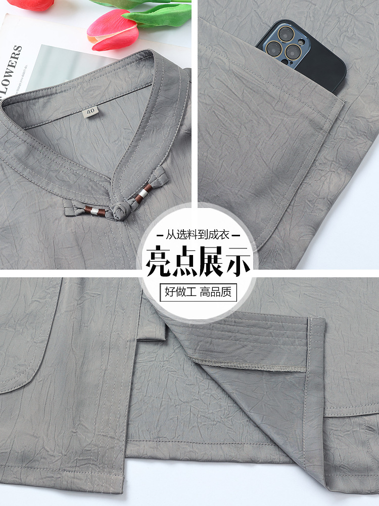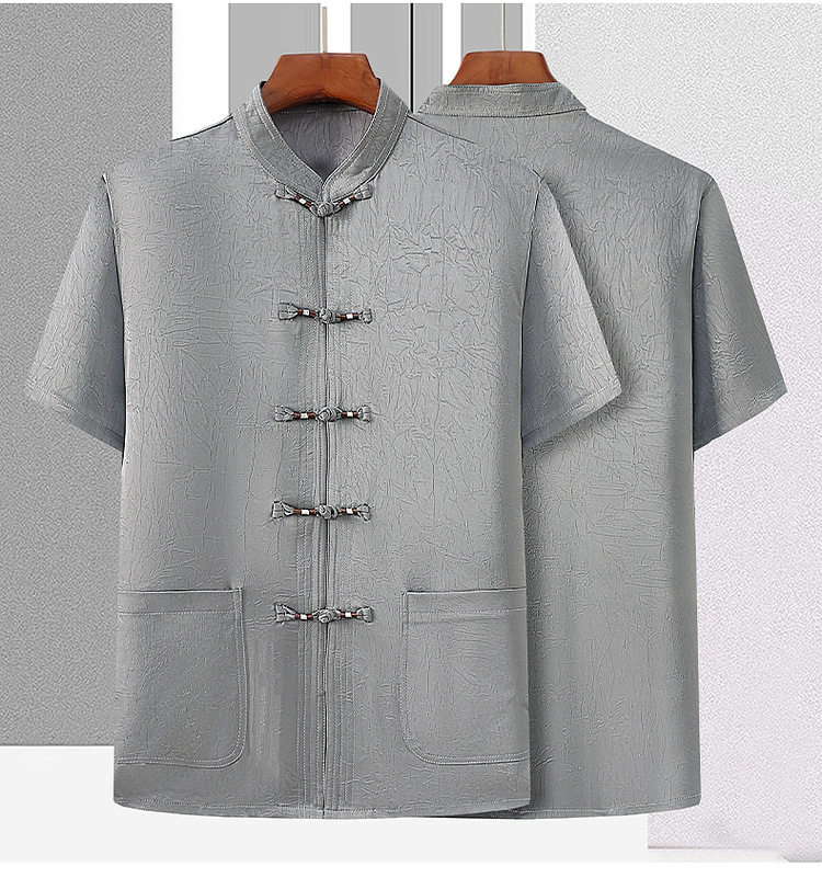 Мужская повседневная рубашка-пуловер с воротником-стойкой, китайский стиль, большие размеры, топ из тенселя в стиле ретро, летняя тонкая футболка из рами с короткими рукавами