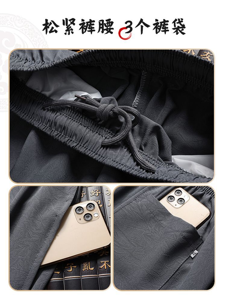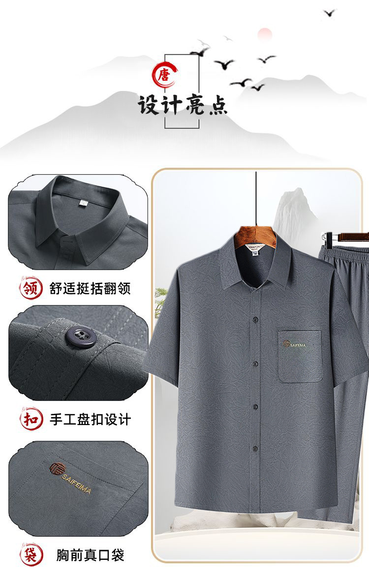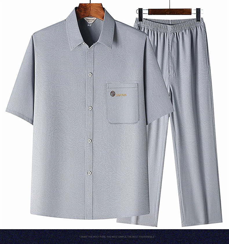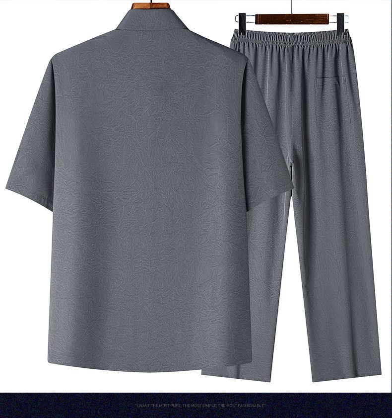 Летний тонкий мужской костюм из ледяного шелка, рубашка с короткими рукавами для среднего и пожилого возраста, мужская свободная рубашка, летний комплект из двух предметов для папы