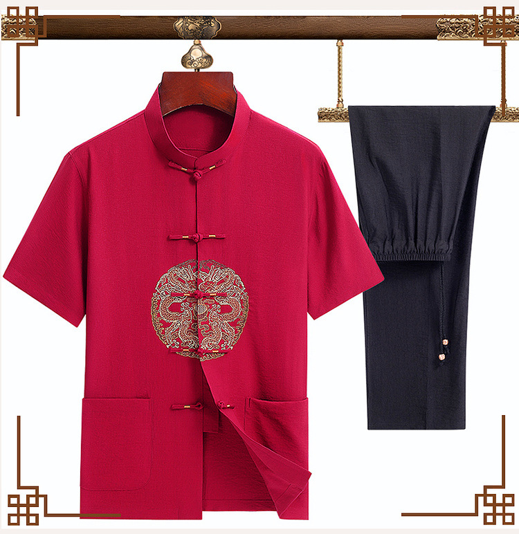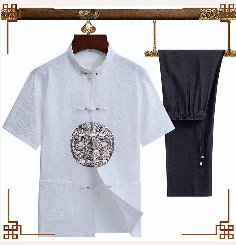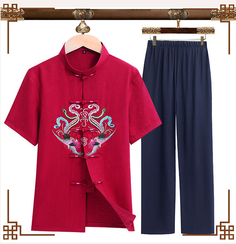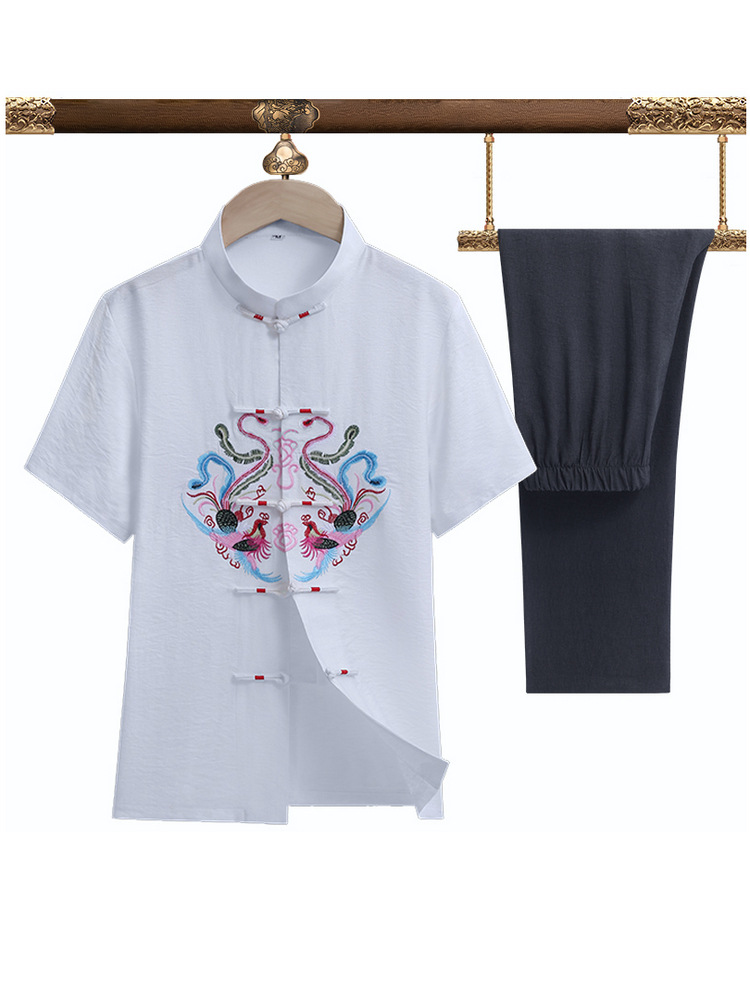 Мужской летний костюм-двойка в стиле тан, короткий рукав, тонкий, для пожилых людей и людей среднего возраста, летний костюм для папы, новинка 2025 года, китайский стиль