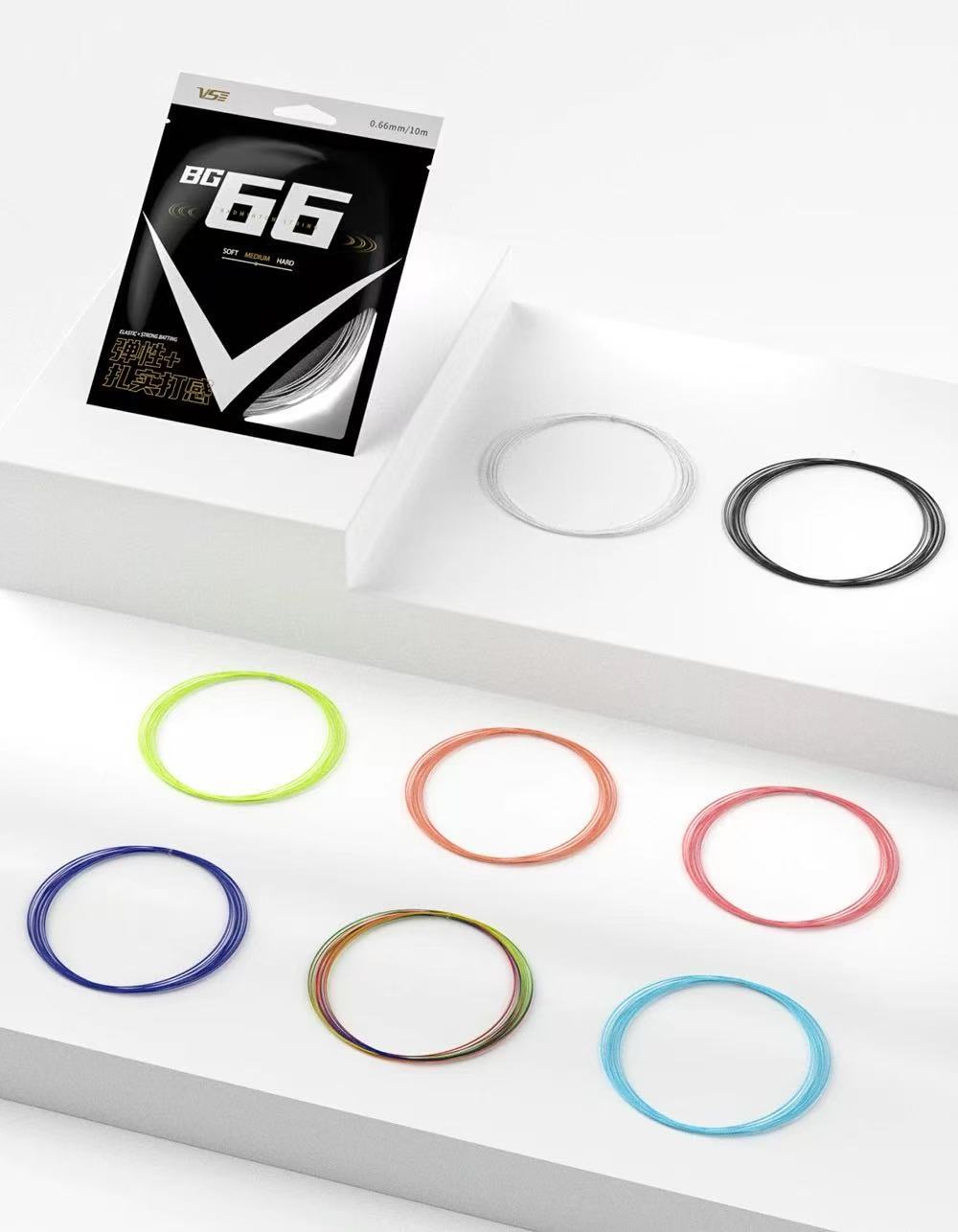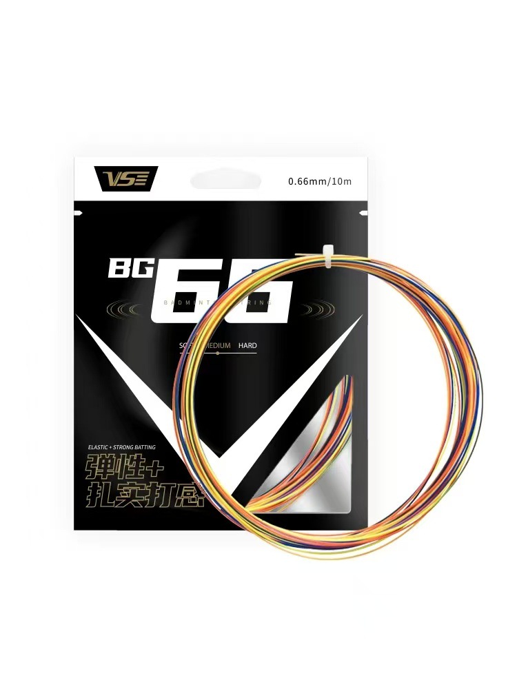 Струна для бадминтона VS Weichen bg66 обладает хорошей эластичностью и устойчивостью к удару, контролю мяча, высокой эластичной струной с перьями, настоящей профессиональной многоцветной струной.