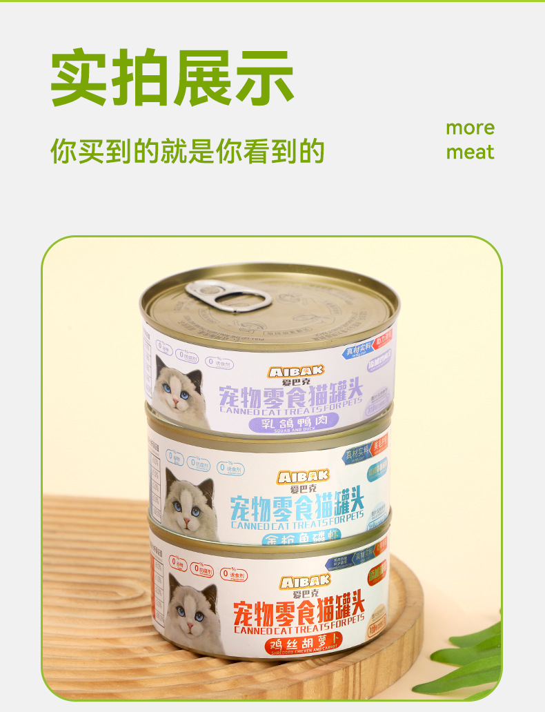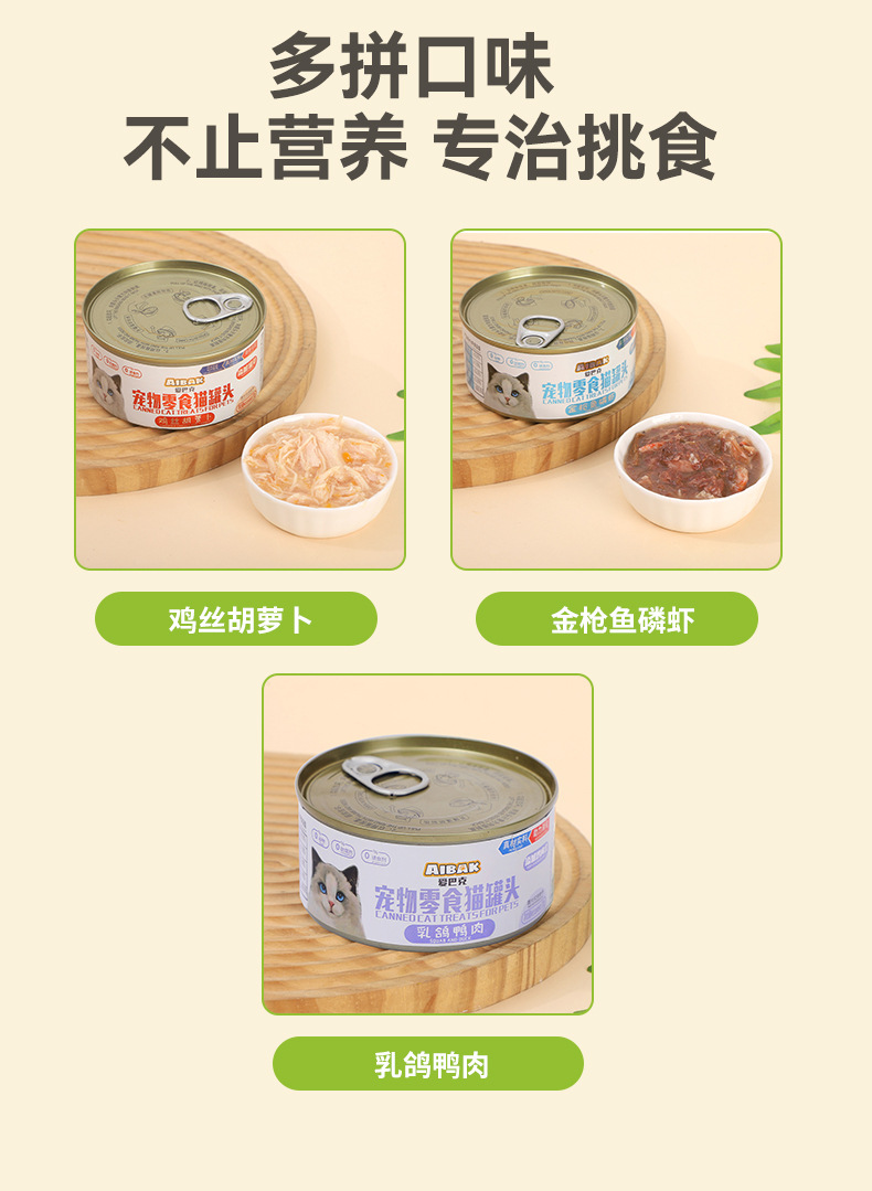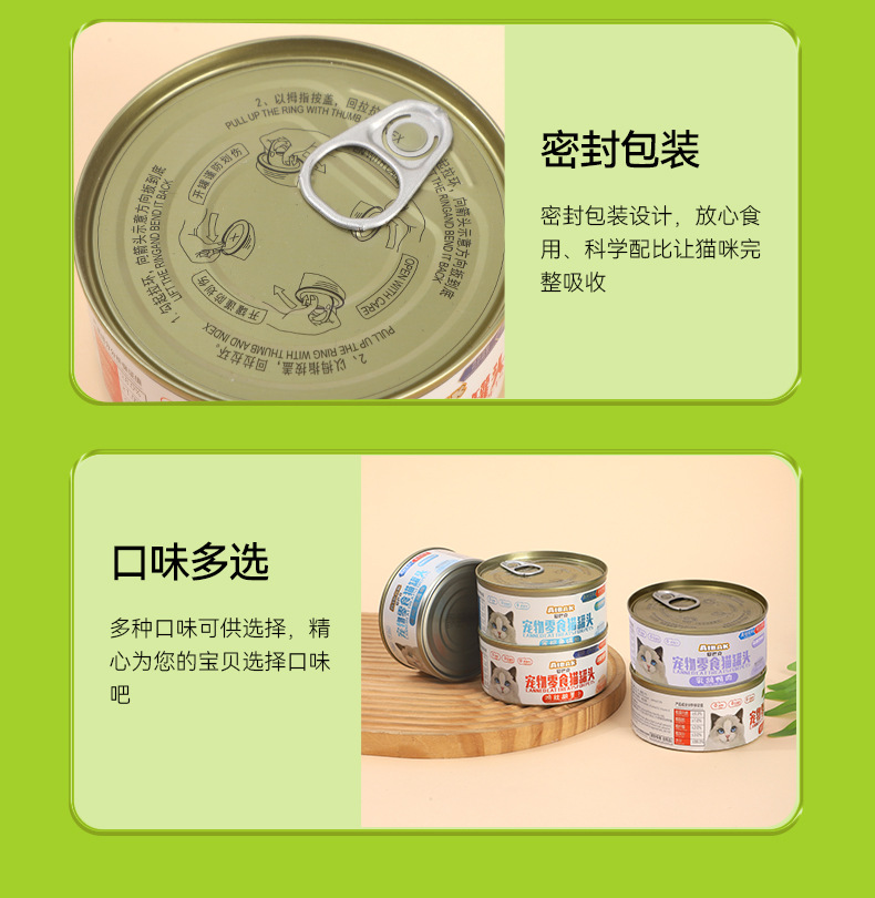 Измельченная курица и овощной вкус 170г/банка; Тунец со вкусом криля 170г/банка; Мясо голубя и утки 170г/банка; Немного дефектный продукт для консервирования, 375 г/банка (может деформироваться из-за проблем с давлением во время производства); Легкий бракованный товар, 375 г/банка (гарантия качества, деформирована только банка)