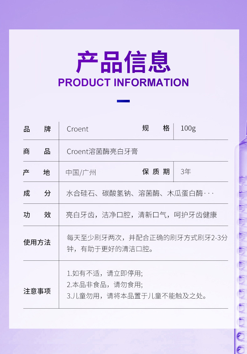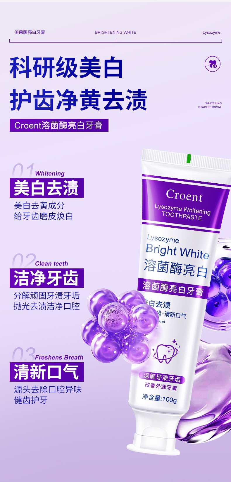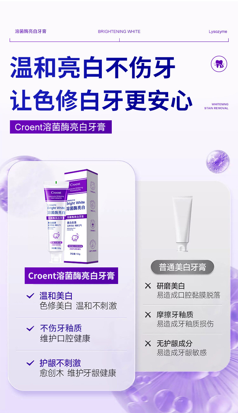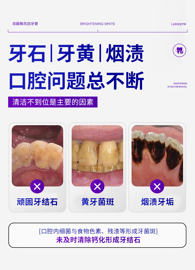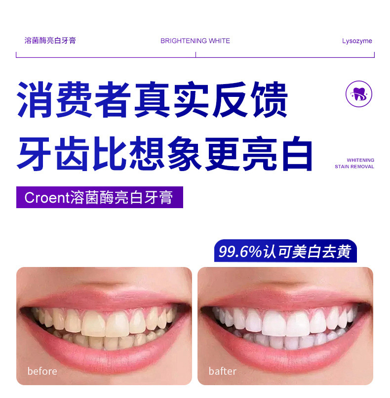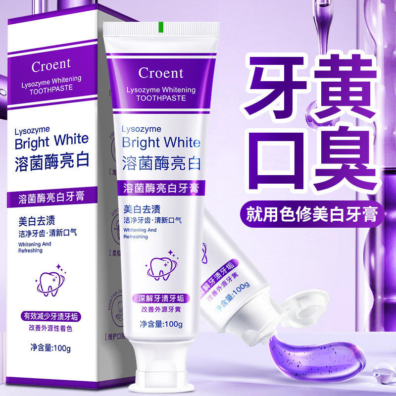 Осветляющая зубная паста с лизоцимом, свежее дыхание, отбеливание зубов, удаление пятен, уход за полостью рта, зубная паста для взрослых, оптовая продажа, 100 г