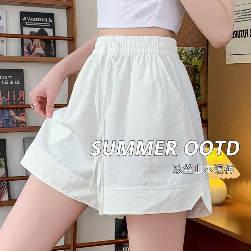 Широкие женские шорты Yamamoto из ледяного шелка, летние тонкие утягивающие шорты с высокой талией, свободные повседневные шорты средней длины.