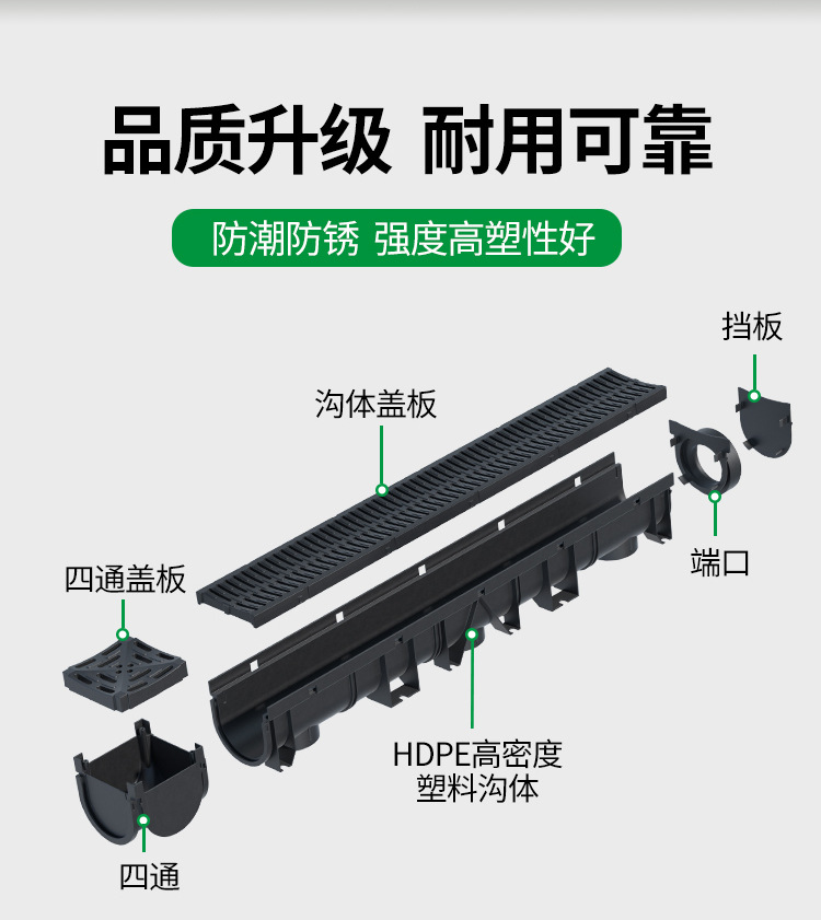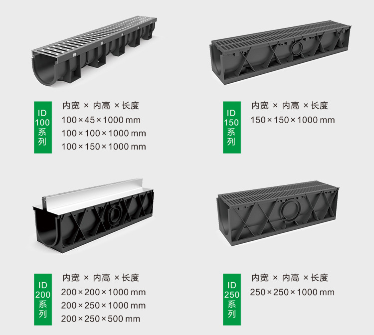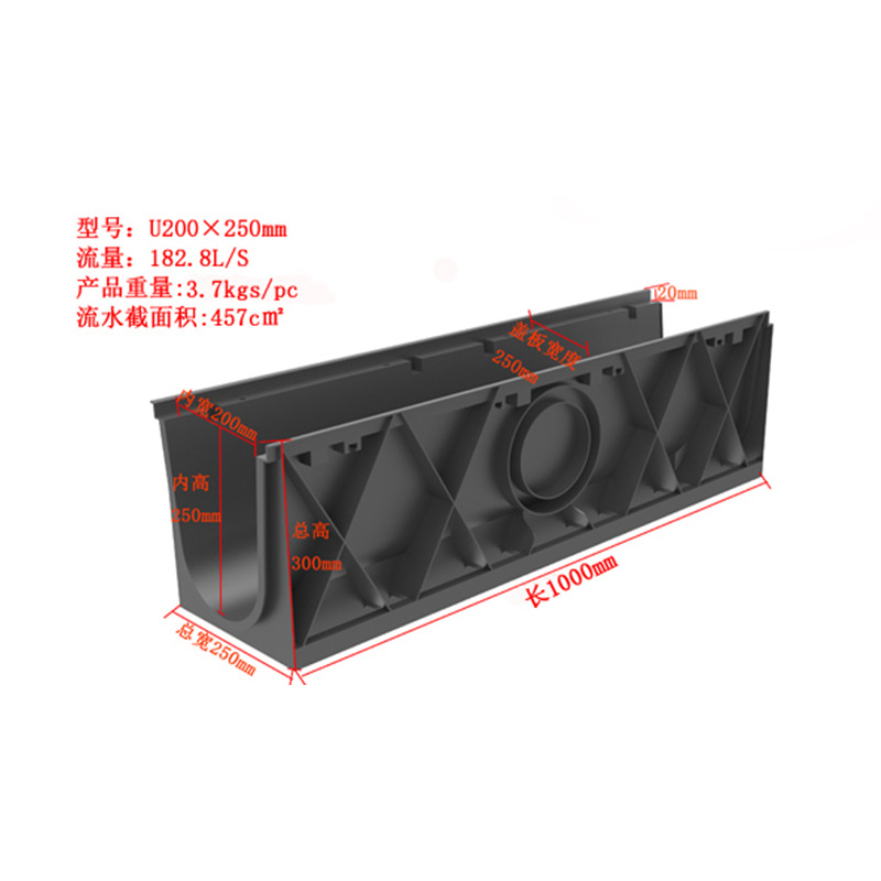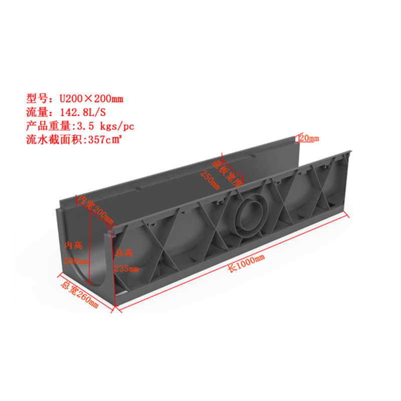 Дренажный желоб из HDPE пластика с U-образным пазом ID200, композитный бетонный дренажный желоб для балкона