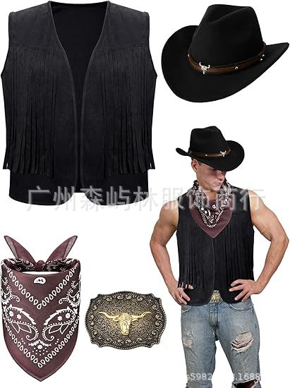 Трансграничные европейские и американские новые хэллоуин 7080-х годов Западный ковбой мужской короткий кисточка жилет хиппи жилет