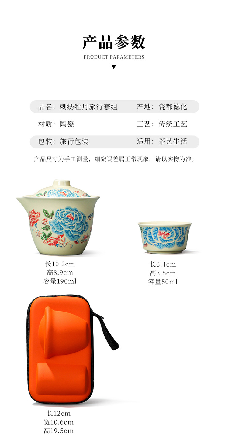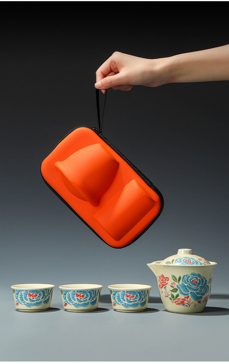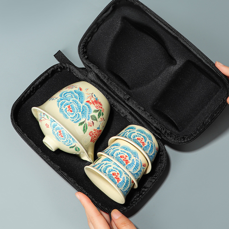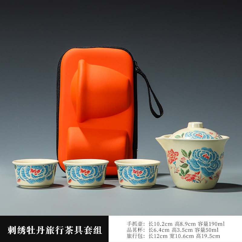 Путешественный чайный сервиз с вышивкой пиона