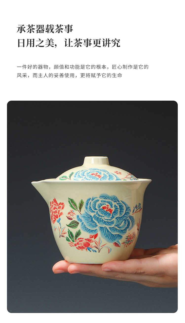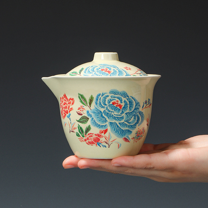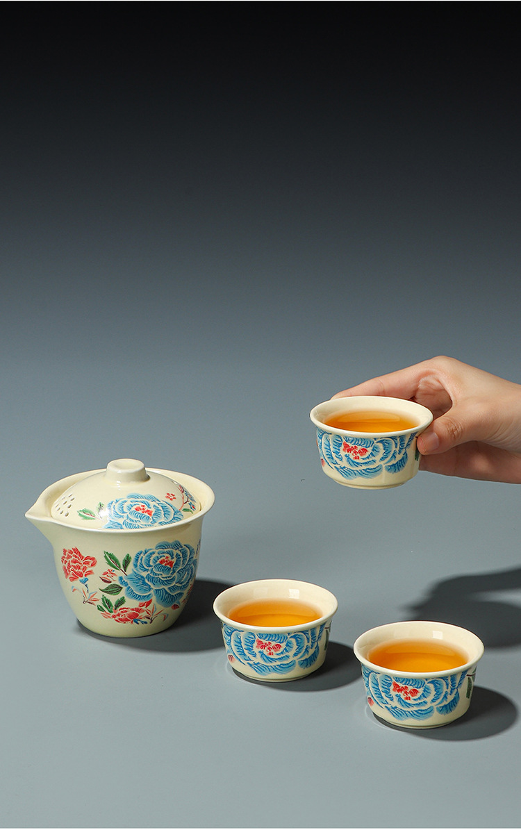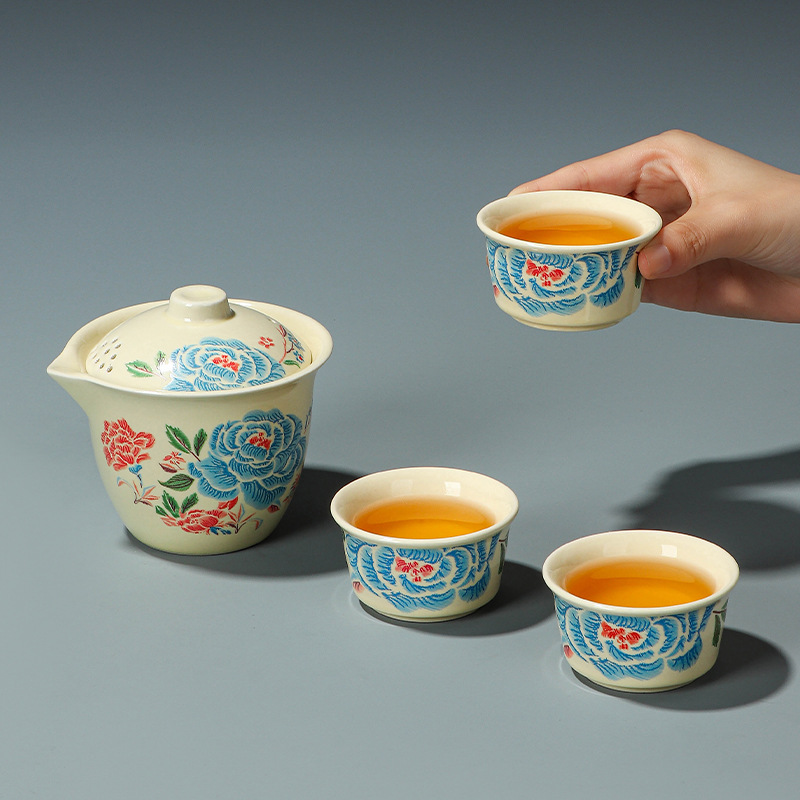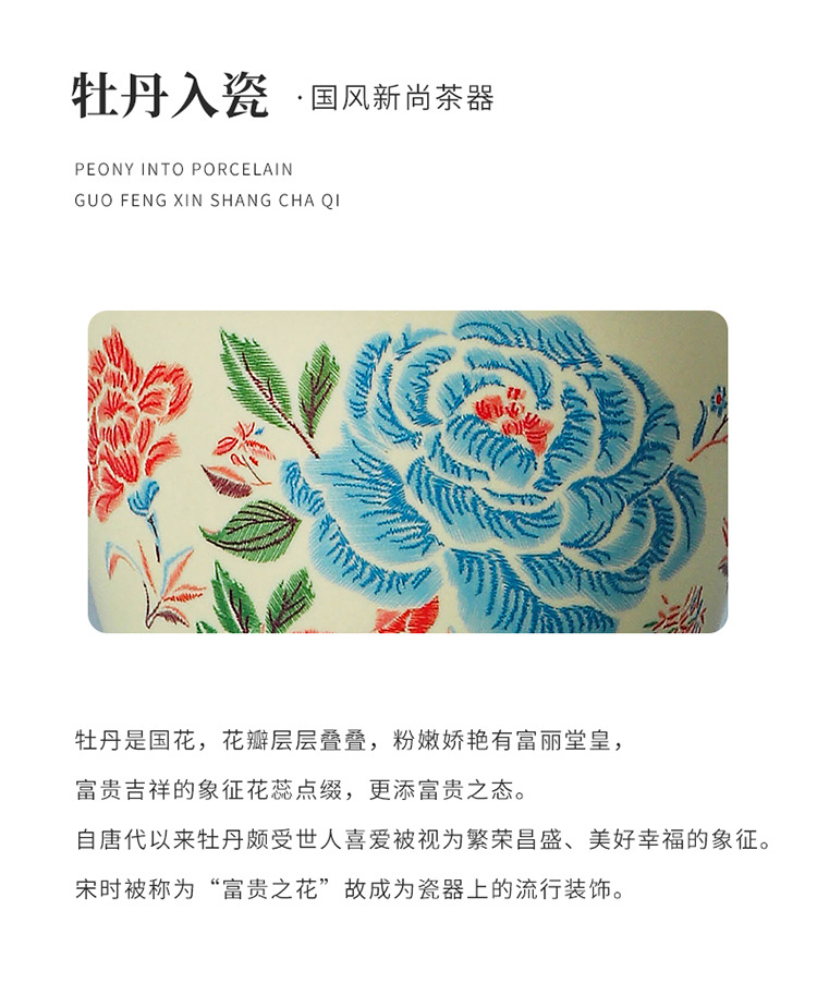 Путешественный чайный сервиз с вышивкой пиона