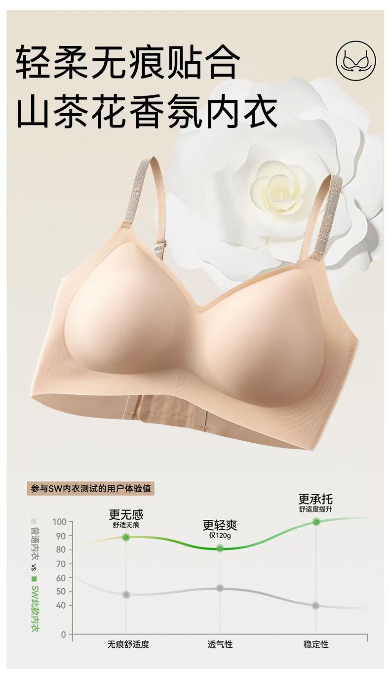 Оригинальное нижнее белье с ароматом эфирного масла камелии для женщин, комфортная, прохладная, нежная и мягкая кожа, поддерживающая вторичную грудь, 3D-желейный бюстгальтер