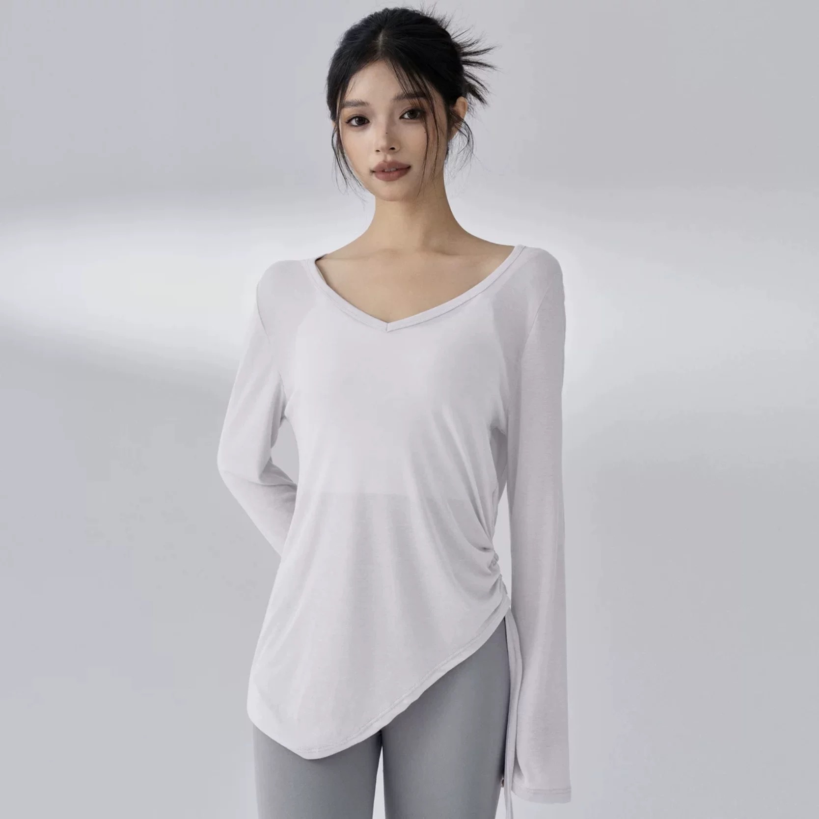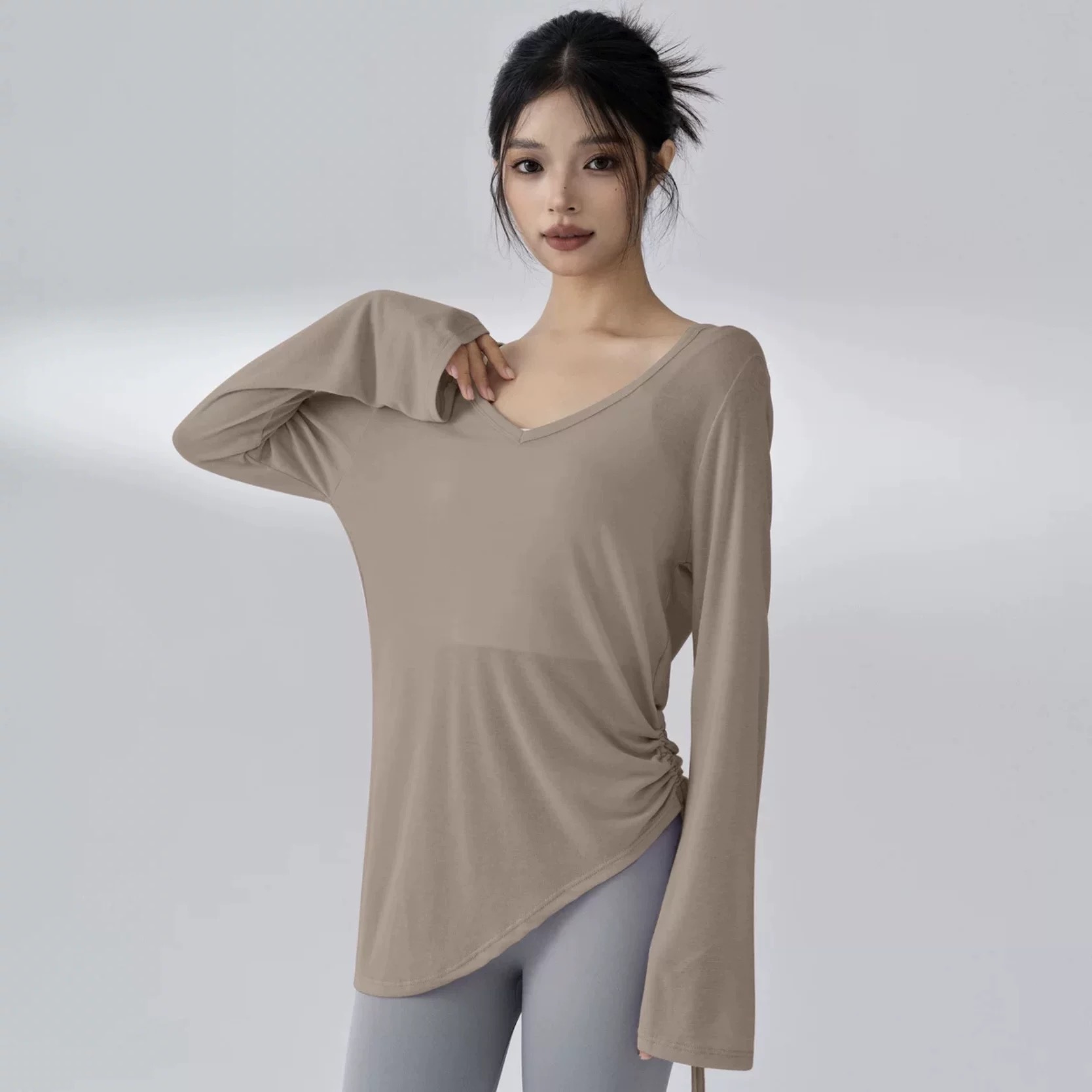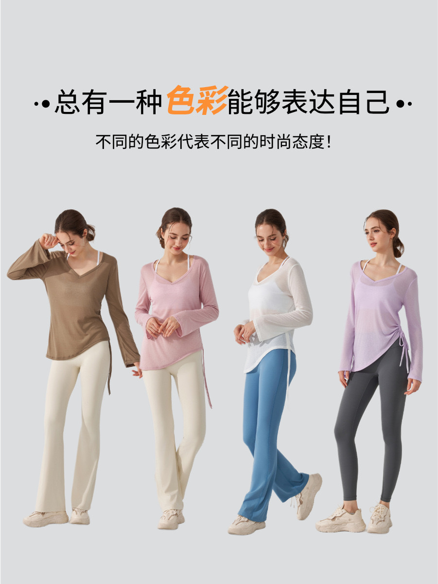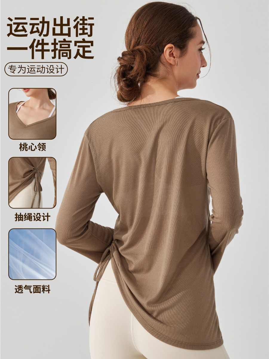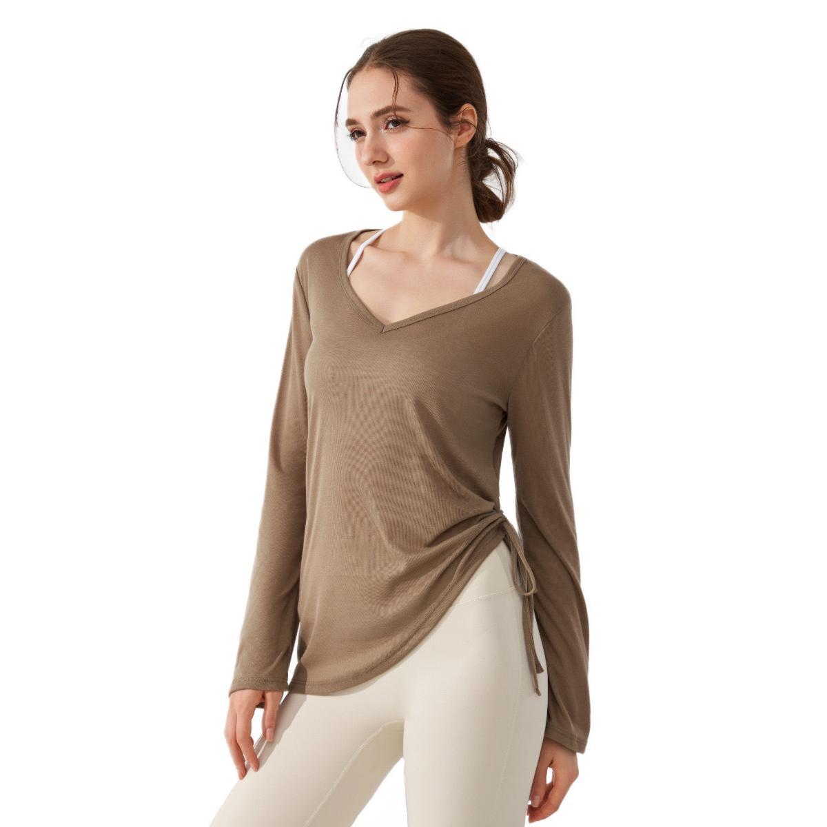 Свободная повседневная блузка для йоги с длинными рукавами, закрывающая бедра, женский топ, плиссированная футболка на шнурке, одежда для фитнеса, йоги, одежда для фитнеса