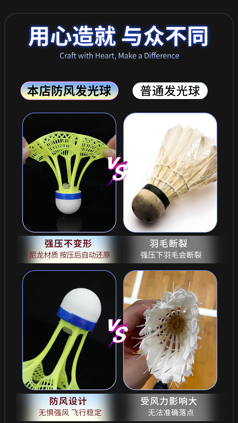 Светящийся ветрозащитный мяч для бадминтона, супер прочный уличный флуоресцентный яркий пластиковый нейлоновый мяч с подсветкой