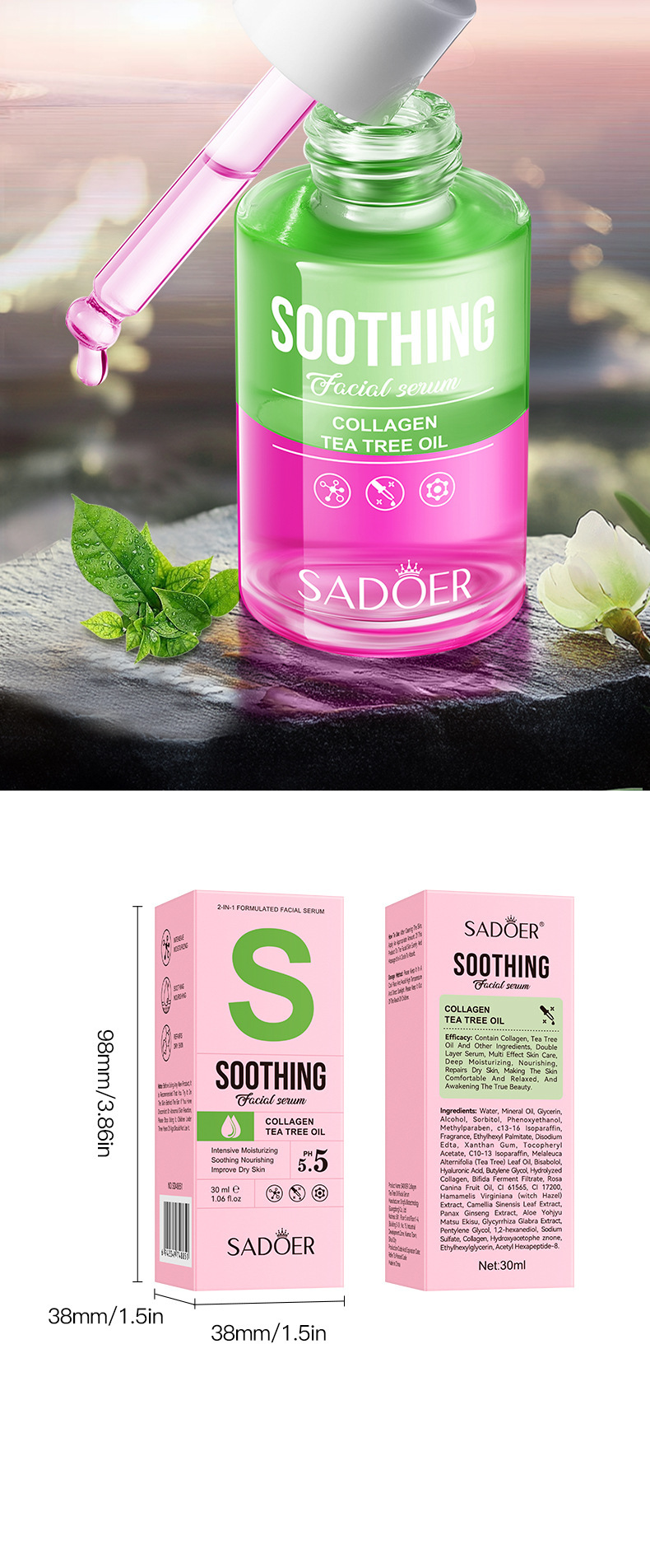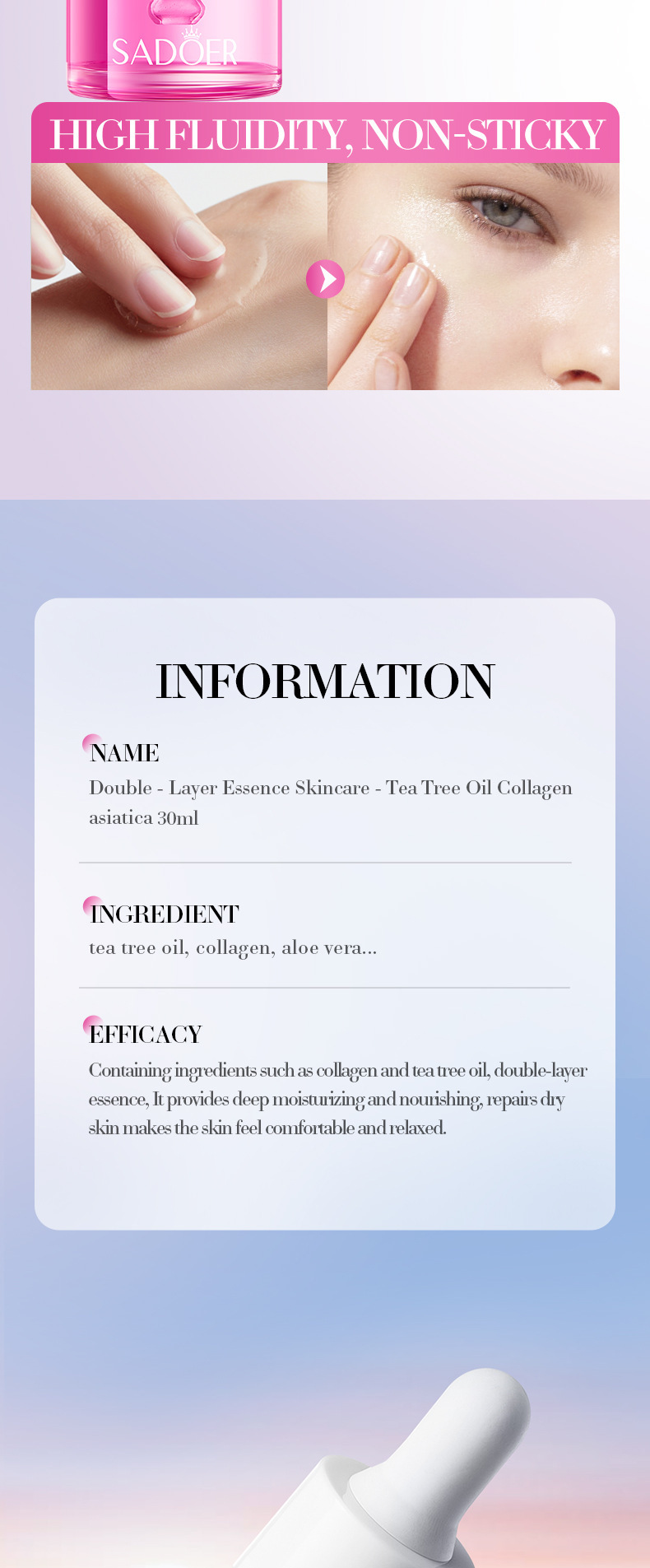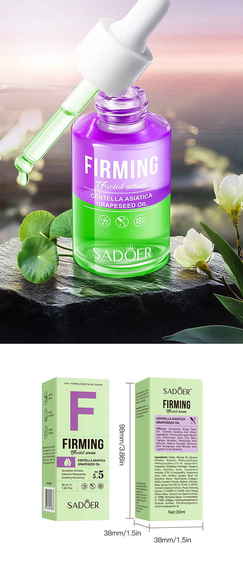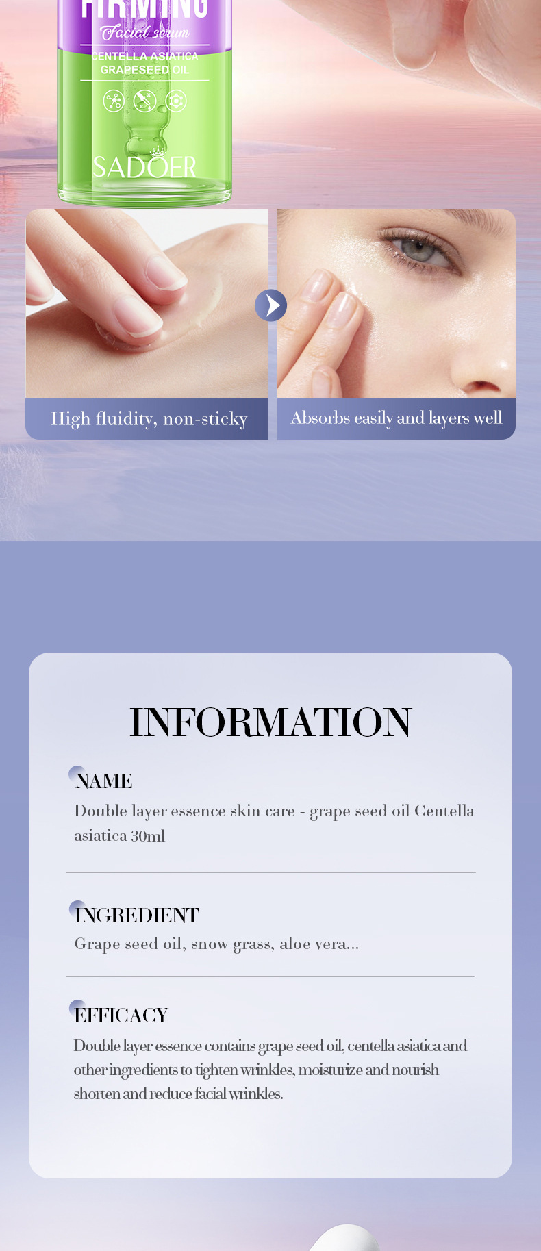 Полное английское масло виноградных косточек Centella Asiatica Двухслойная эссенция SADOER Увлажняющая эссенция для ухода за кожей Трансграничная внешняя торговля Оптовая торговля