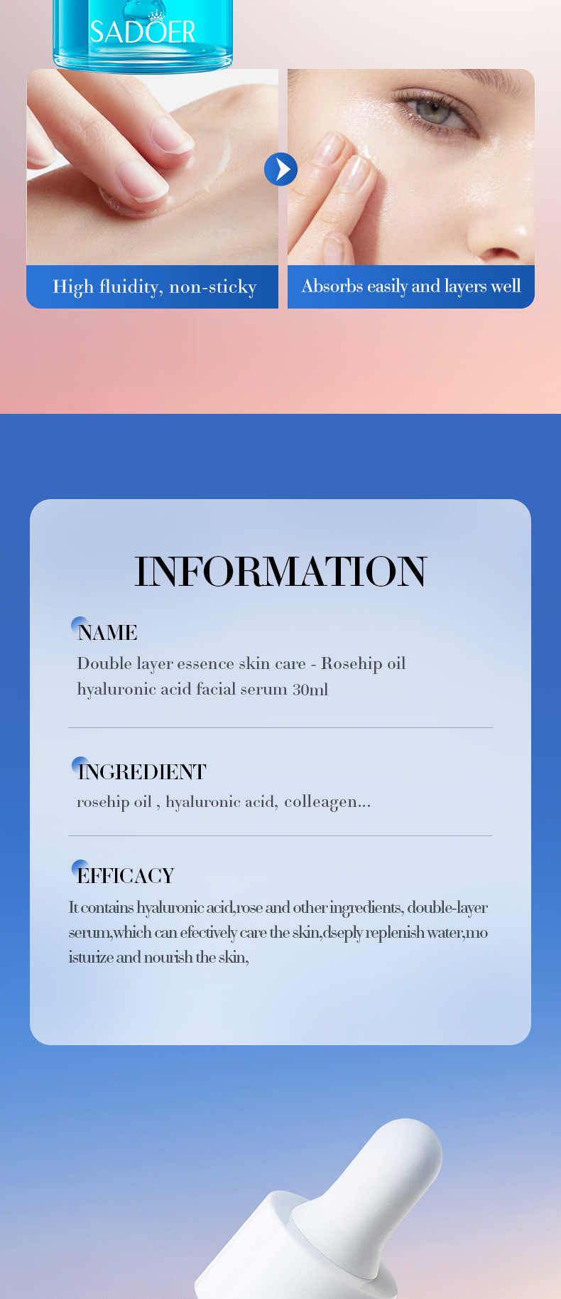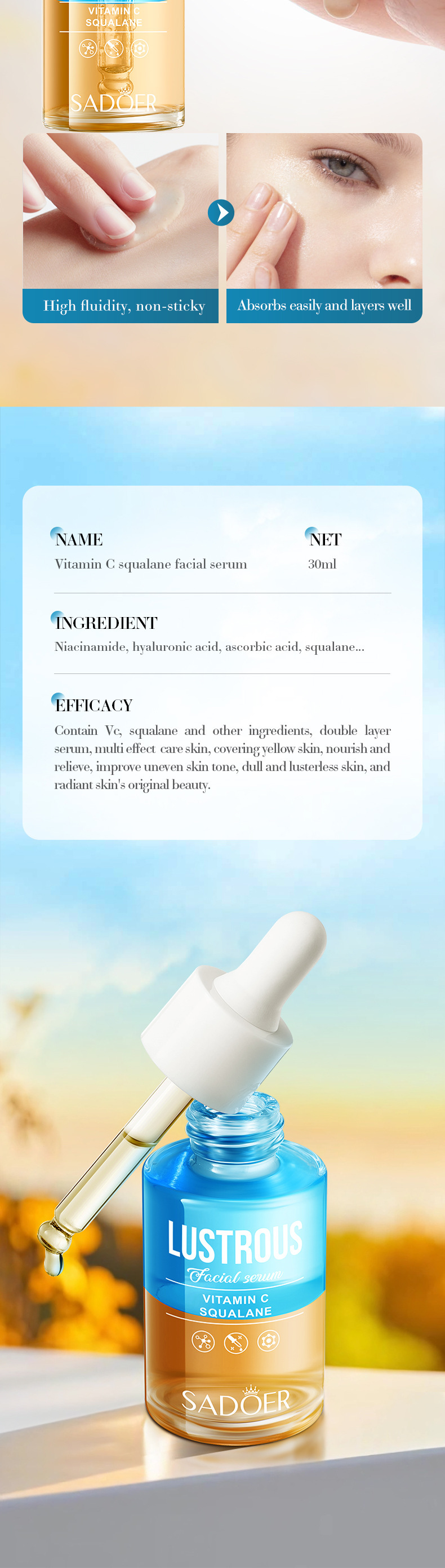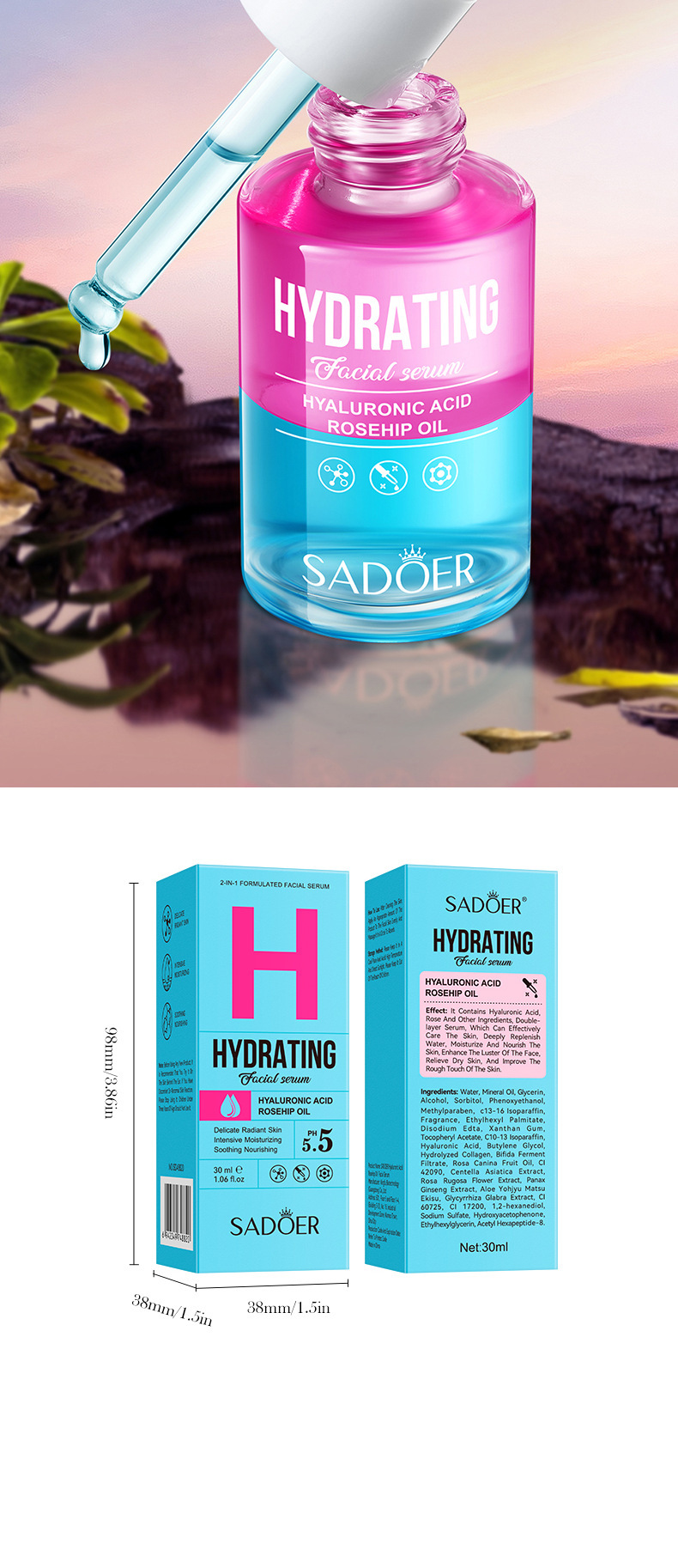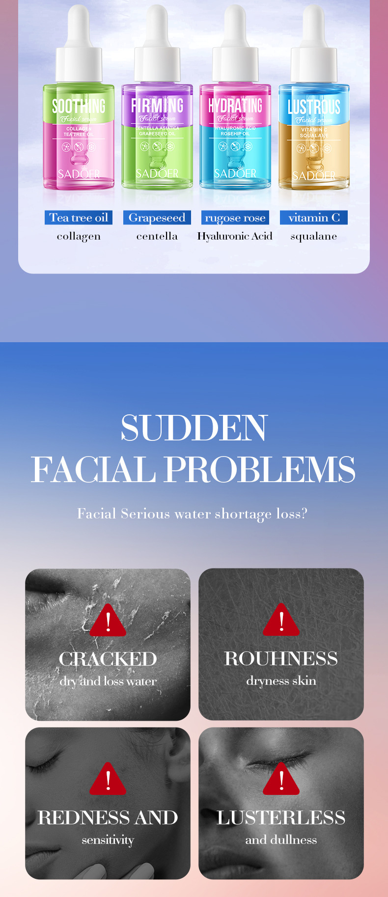 Полное английское масло виноградных косточек Centella Asiatica Двухслойная эссенция SADOER Увлажняющая эссенция для ухода за кожей Трансграничная внешняя торговля Оптовая торговля