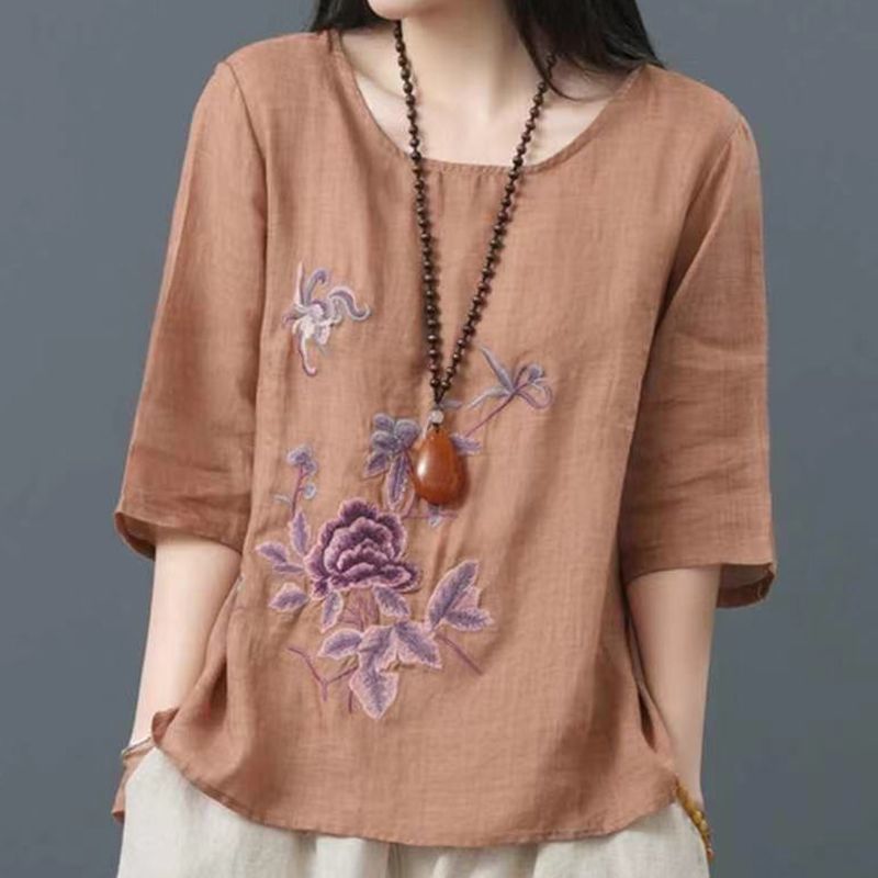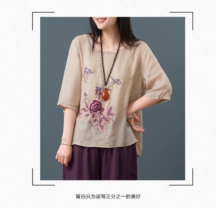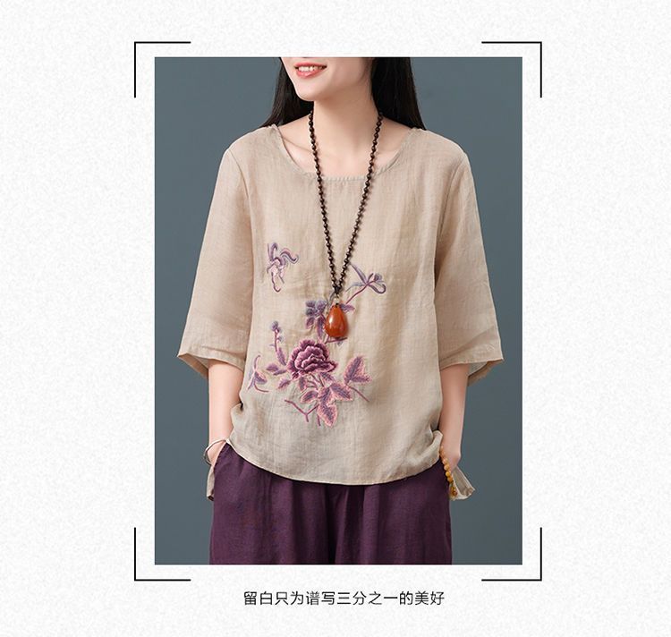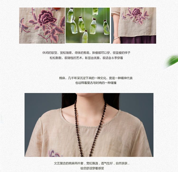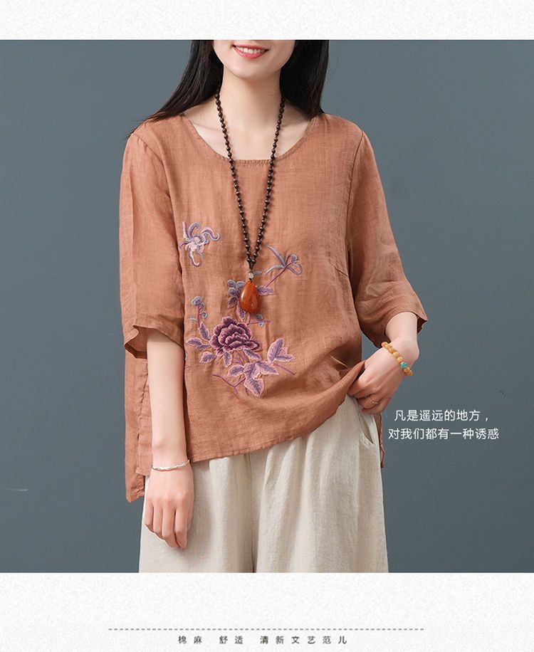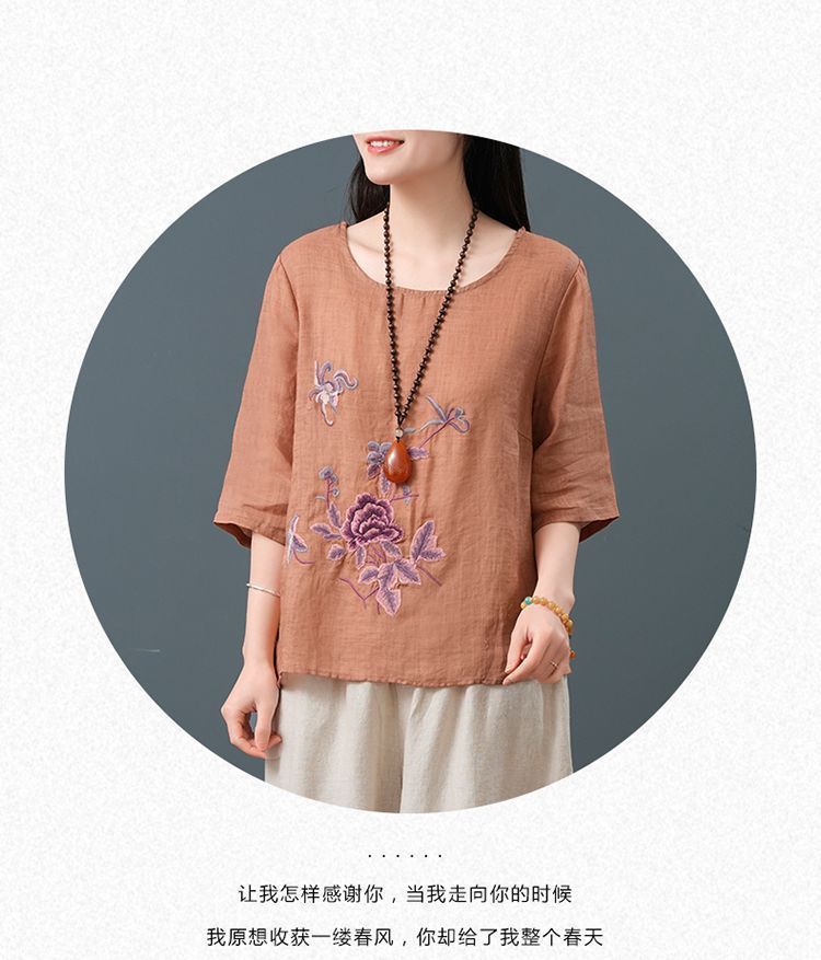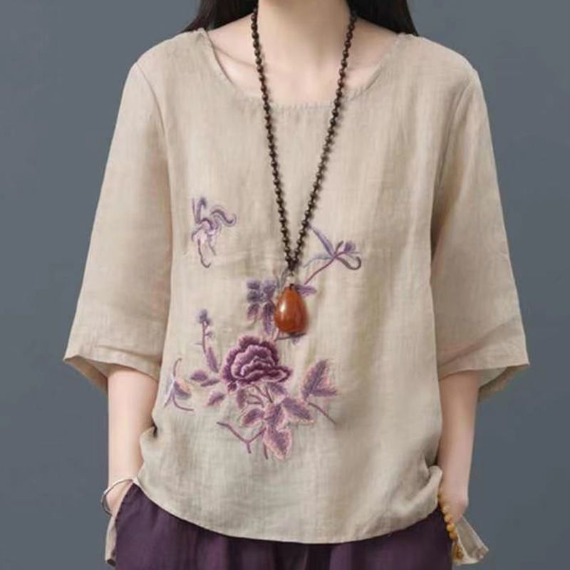 Летние женские топы из хлопка и льна больших размеров, женские свободные универсальные футболки в литературном стиле с вышивкой в стиле ретро в китайском стиле, женские футболки в этническом стиле