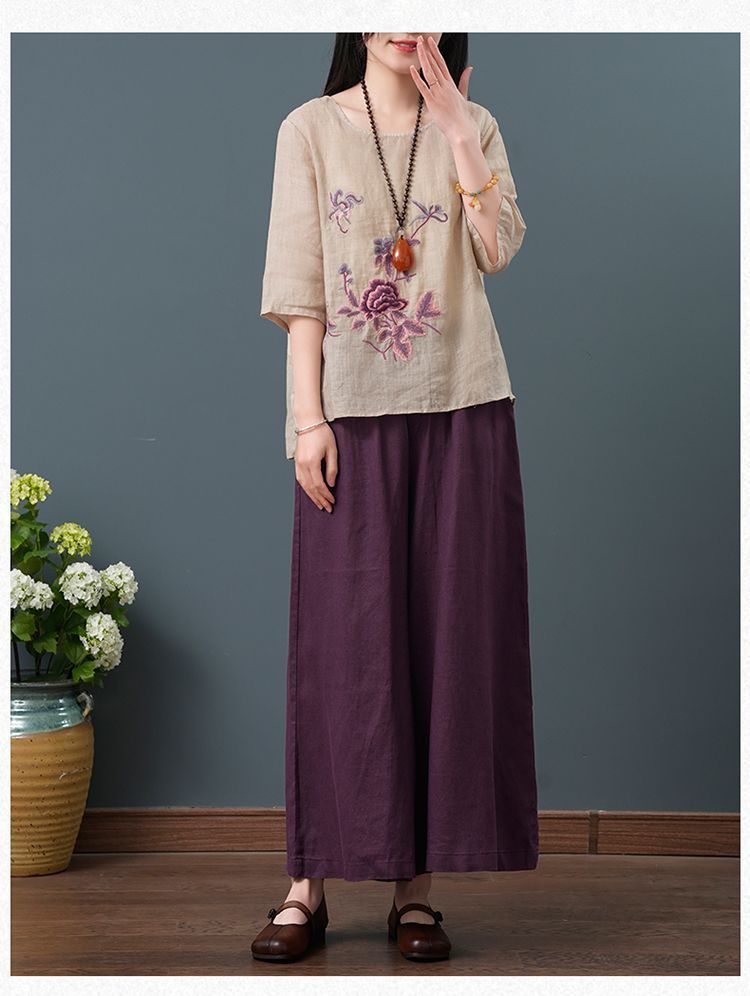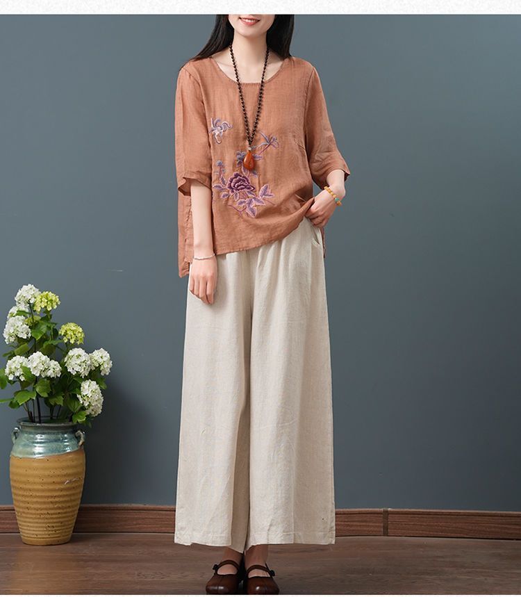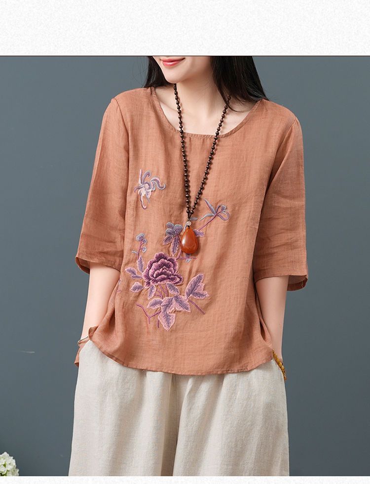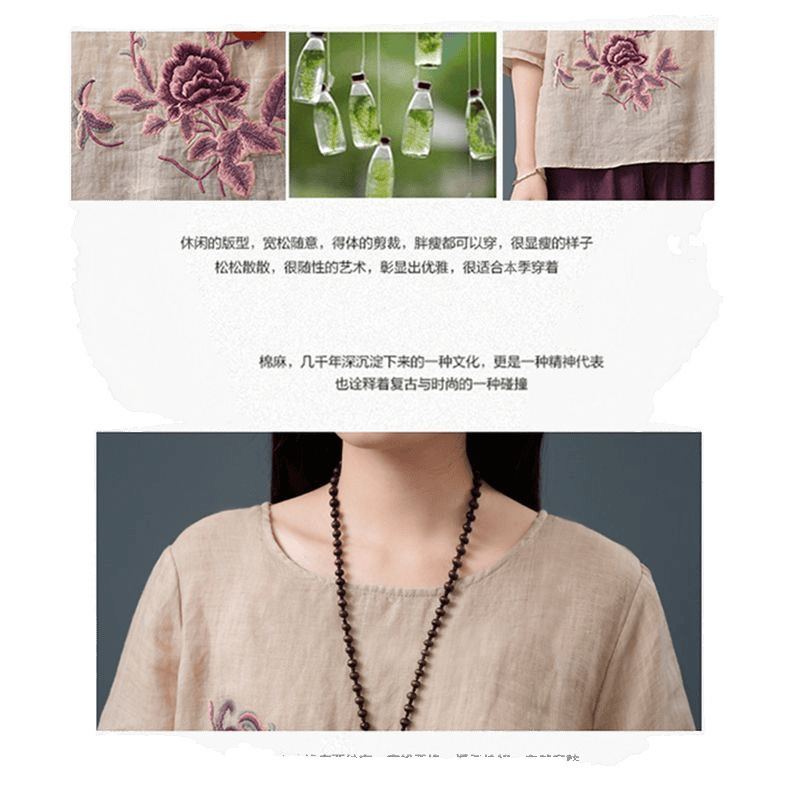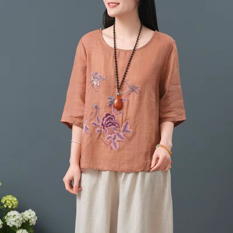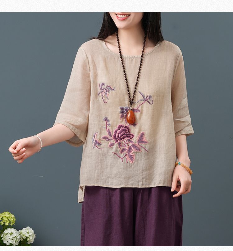 Летние женские топы из хлопка и льна больших размеров, женские свободные универсальные футболки в литературном стиле с вышивкой в стиле ретро в китайском стиле, женские футболки в этническом стиле