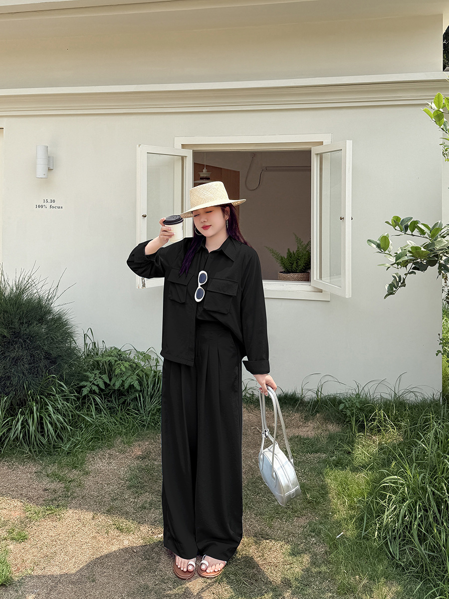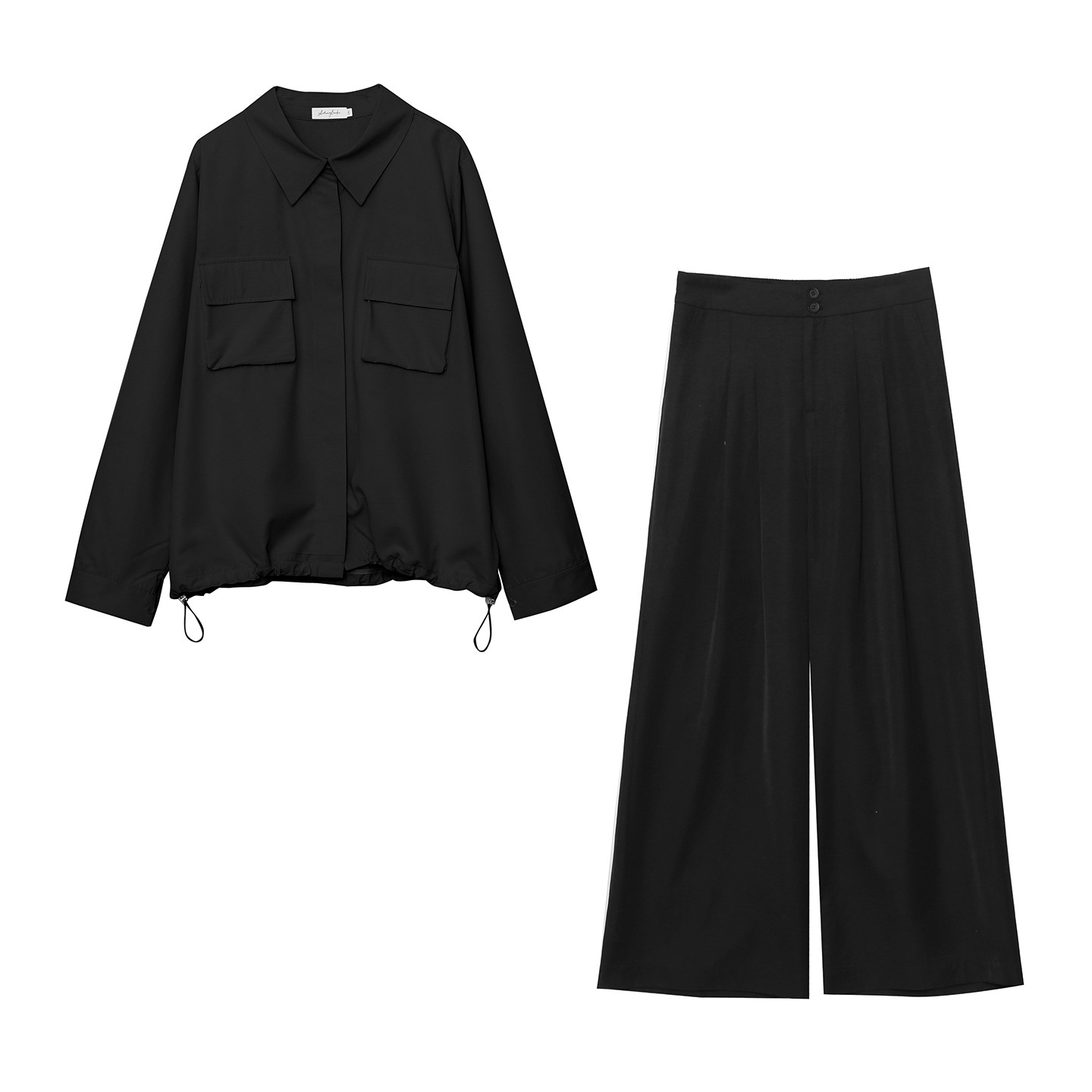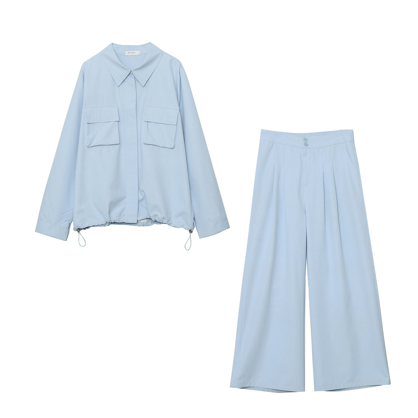 W1295 Xuanchen Корейский стиль, повседневный костюм-рубашка, весенне-летний свободный комплект из двух предметов с широкими брюками для женщин