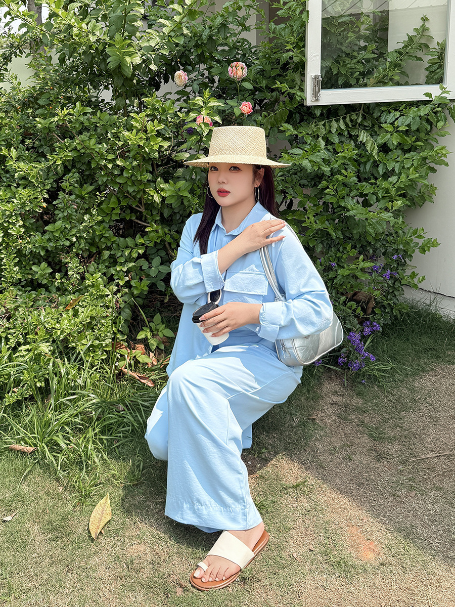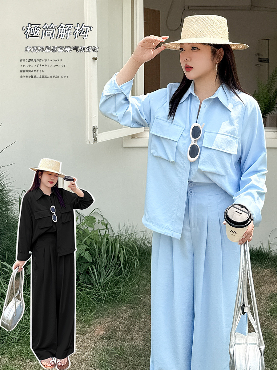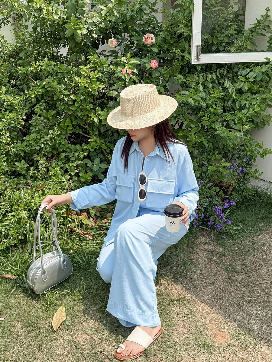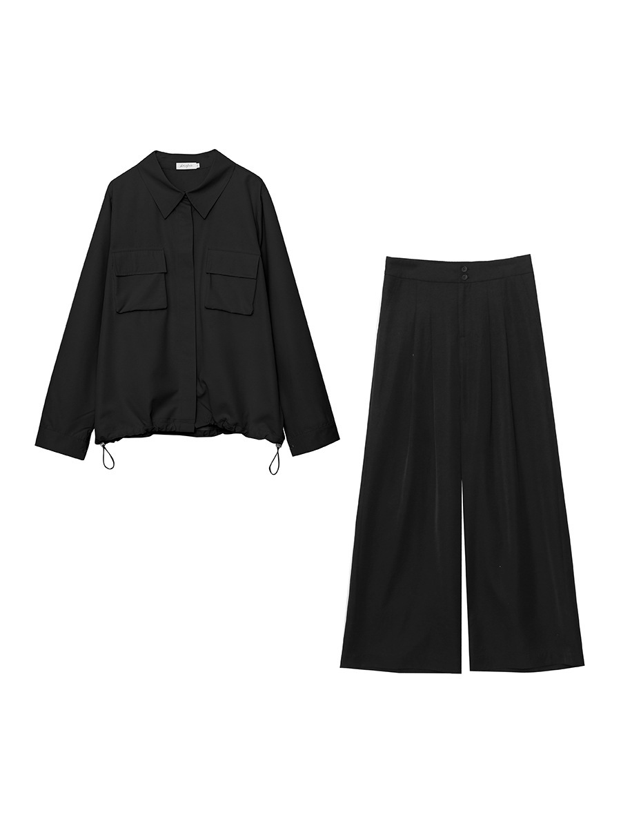 W1295 Xuanchen Корейский стиль, повседневный костюм-рубашка, весенне-летний свободный комплект из двух предметов с широкими брюками для женщин