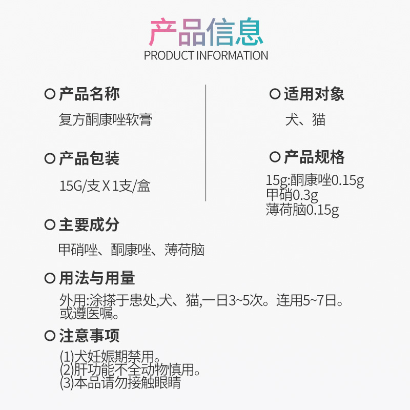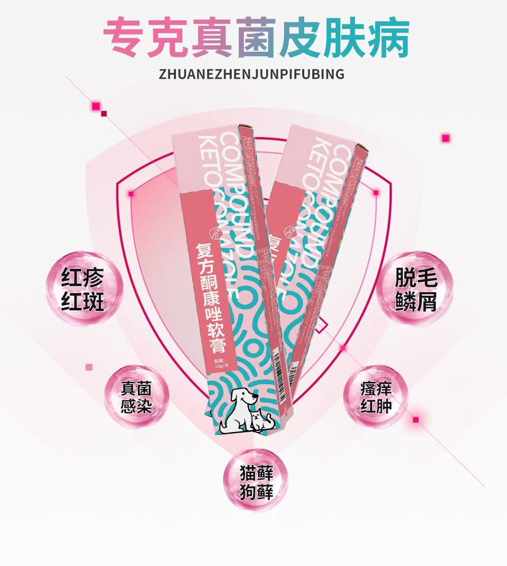 Универсальная мазь Jinyu с кетоконазолом для собак и кошек, от кожных проблем и грибка, 15 г/тюбик, антибактериальное средство для животных