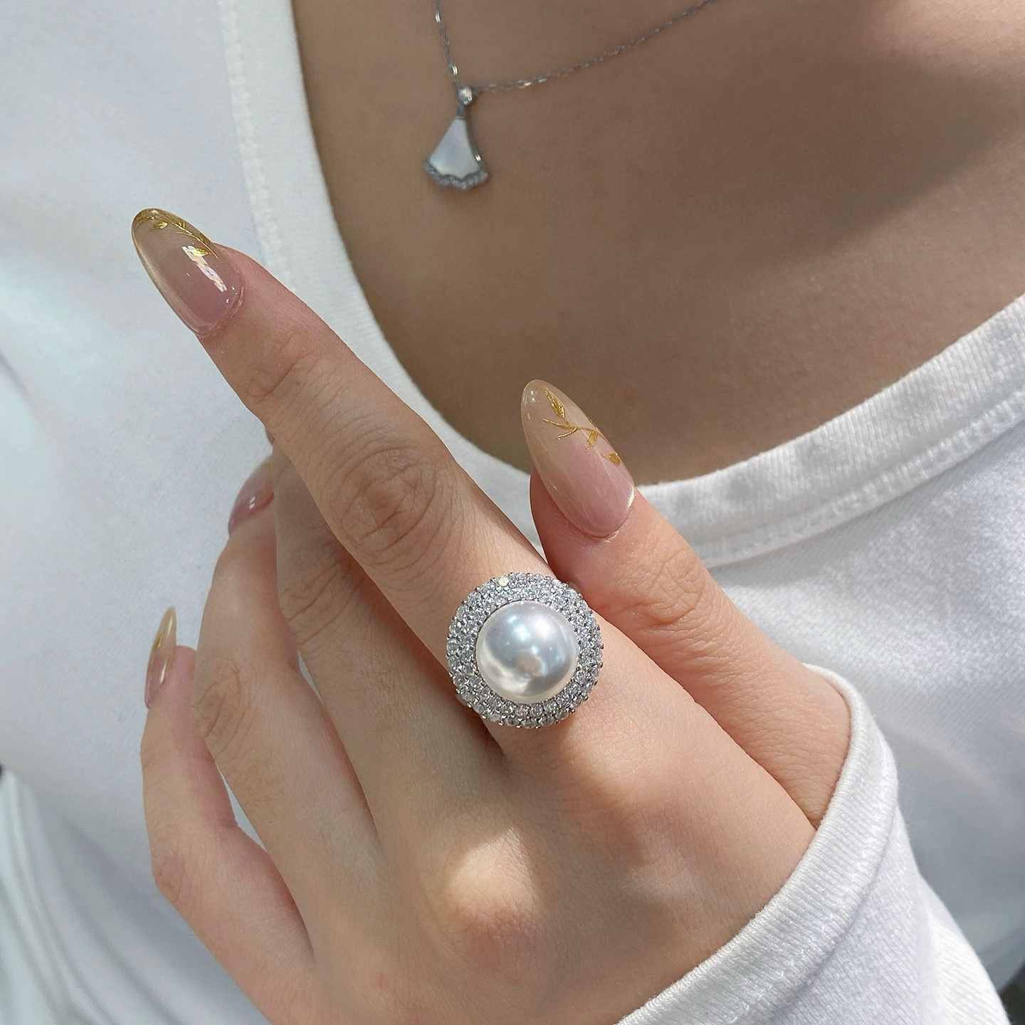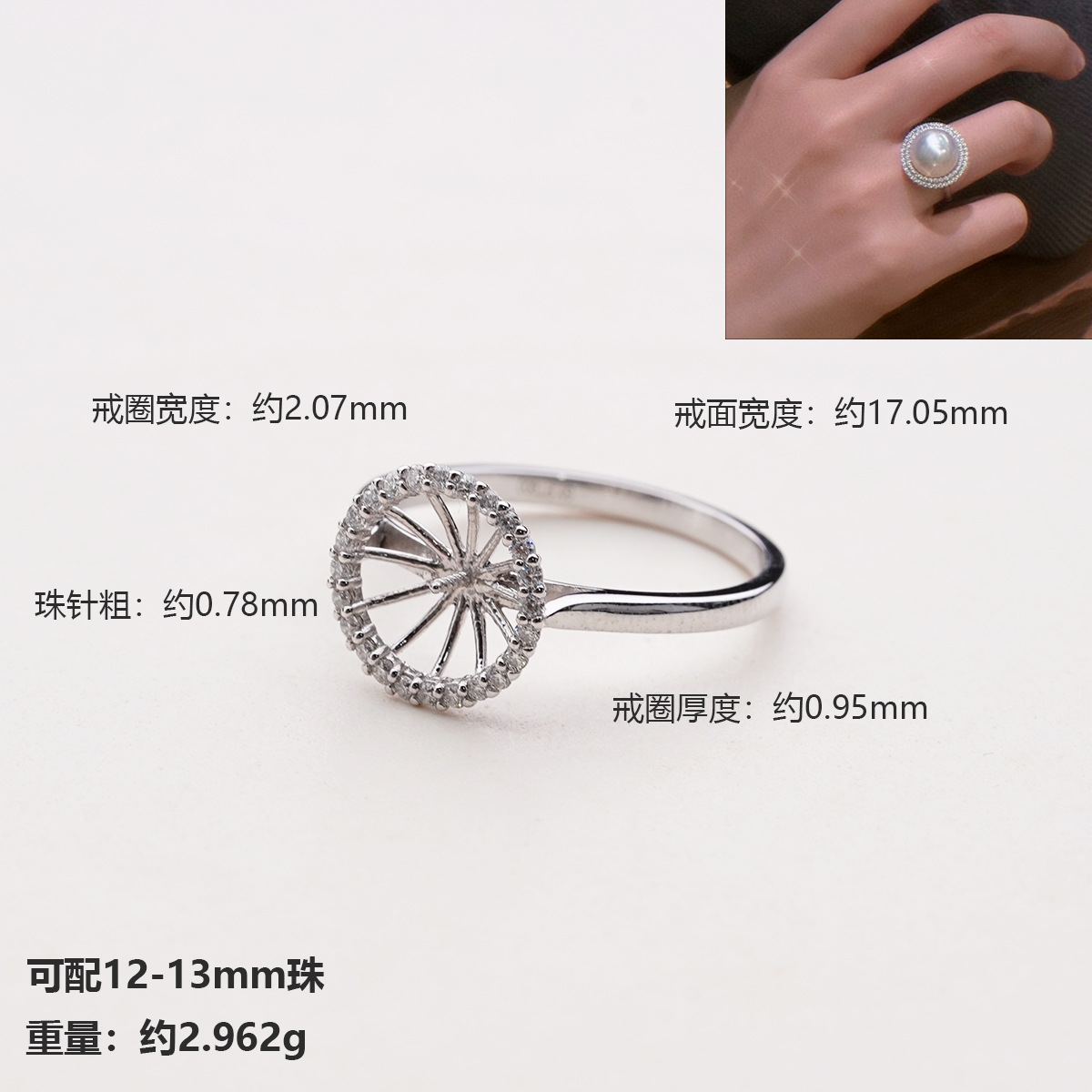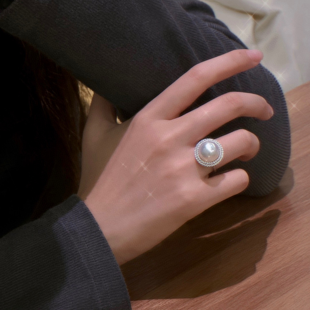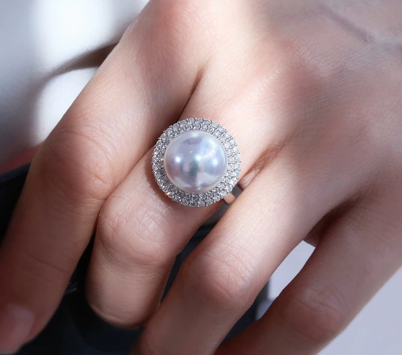 Аксессуары Platinum Pt900 доступные роскошные двойные кольца с бриллиантами, инкрустированные d0,6ct, с бусинами 12-13 мм без бусин