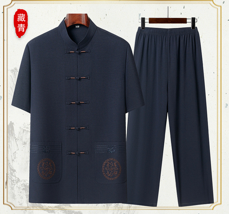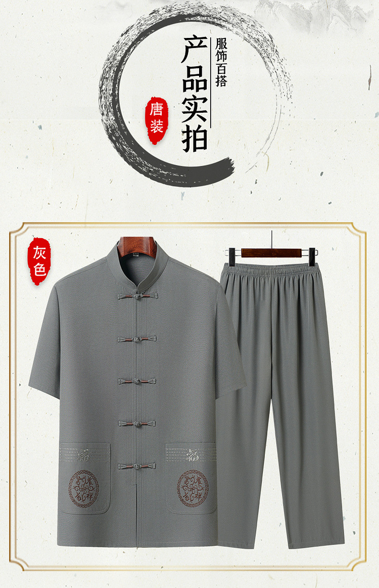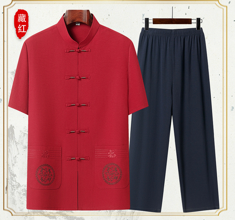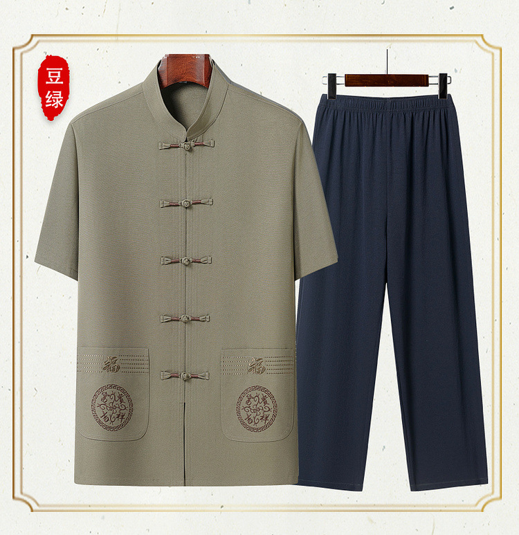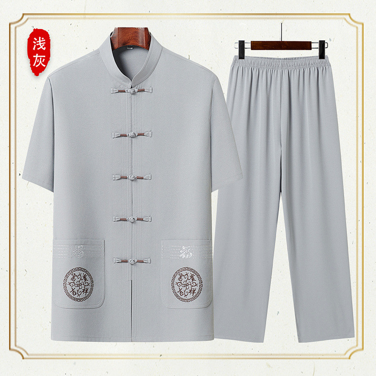 Костюм Тан для мужчин среднего и пожилого возраста, мужской костюм с короткими рукавами, летний повседневный костюм для папы, летний костюм для тай-чи, одежда для пожилых людей, ханьфу