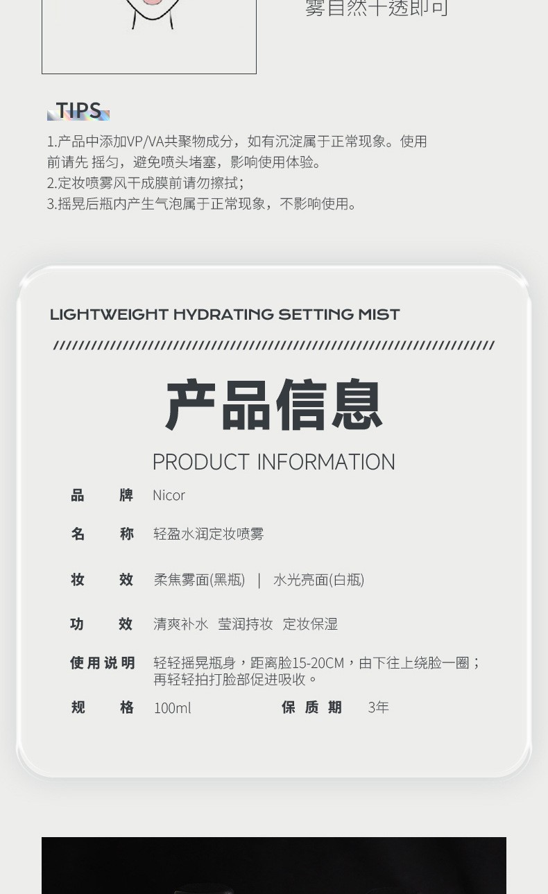 Легкий увлажняющий спрей для фиксации макияжа Nicor