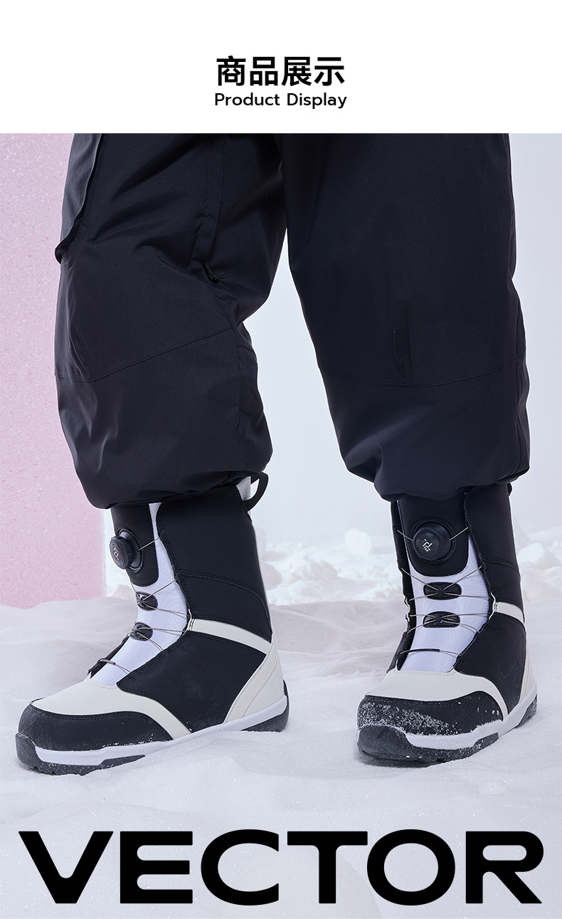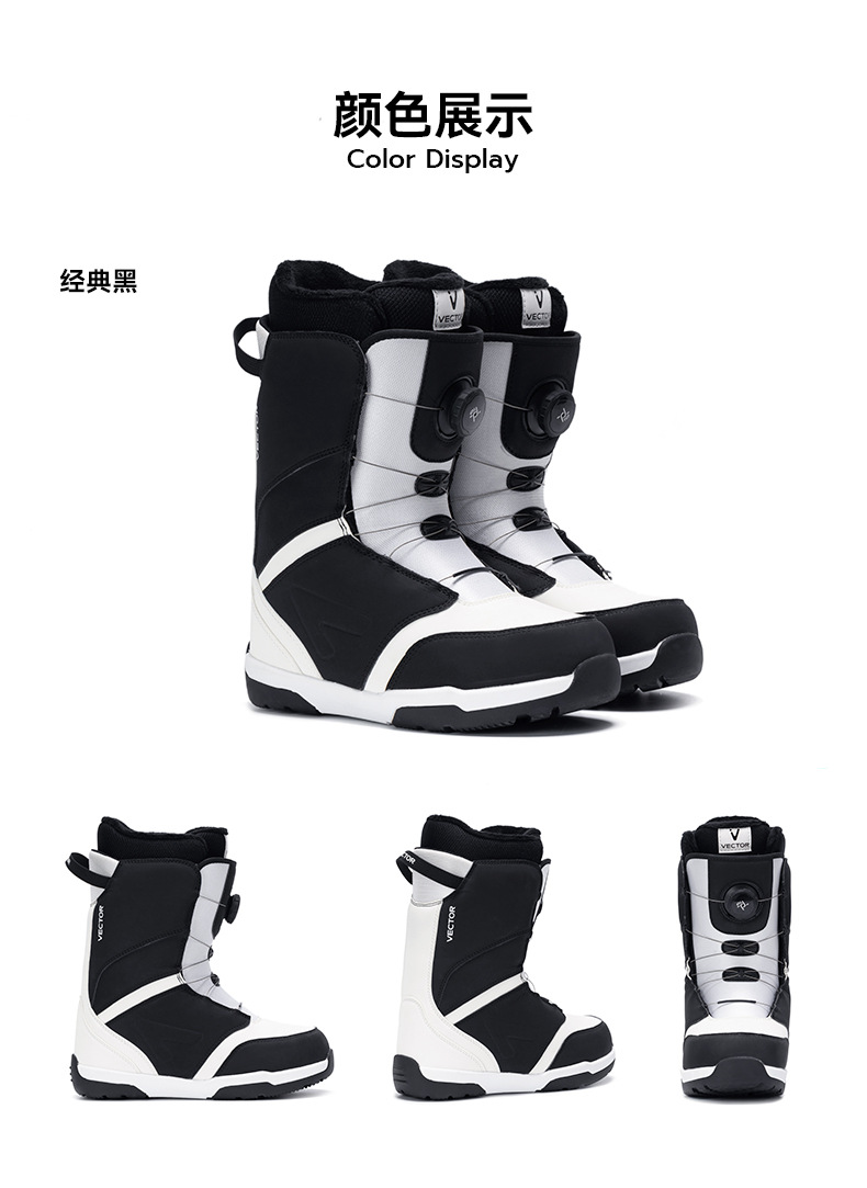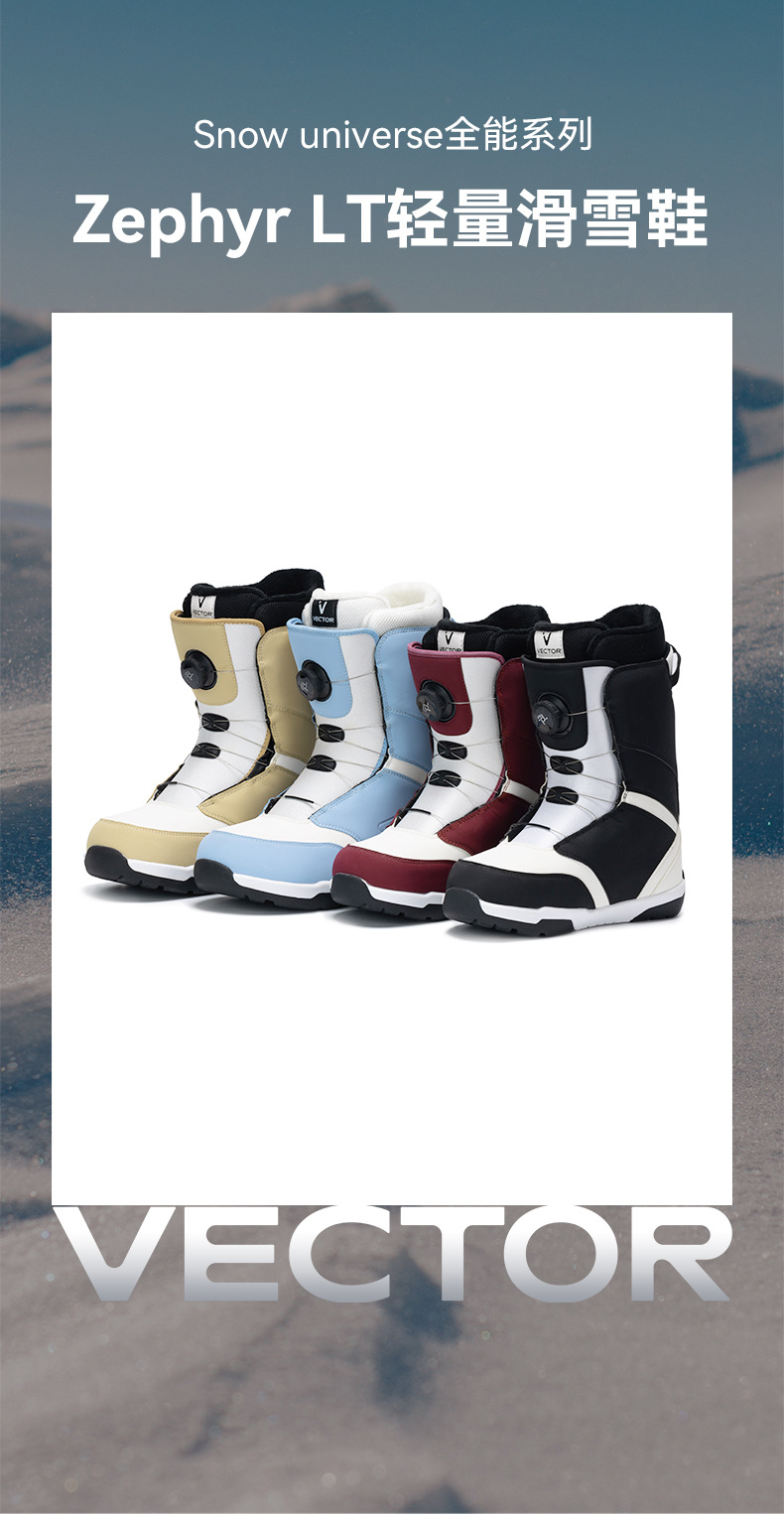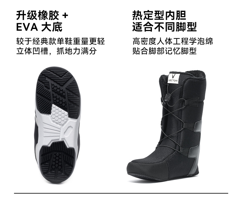 VECTOR играет с новыми противоскользящими, амортизирующими, теплыми и водонепроницаемыми быстросъемными лыжными ботинками, лыжным снаряжением и снегоступами.