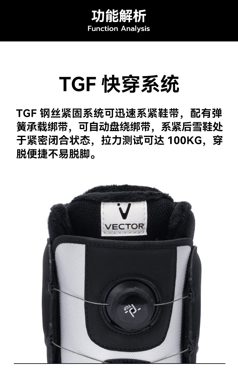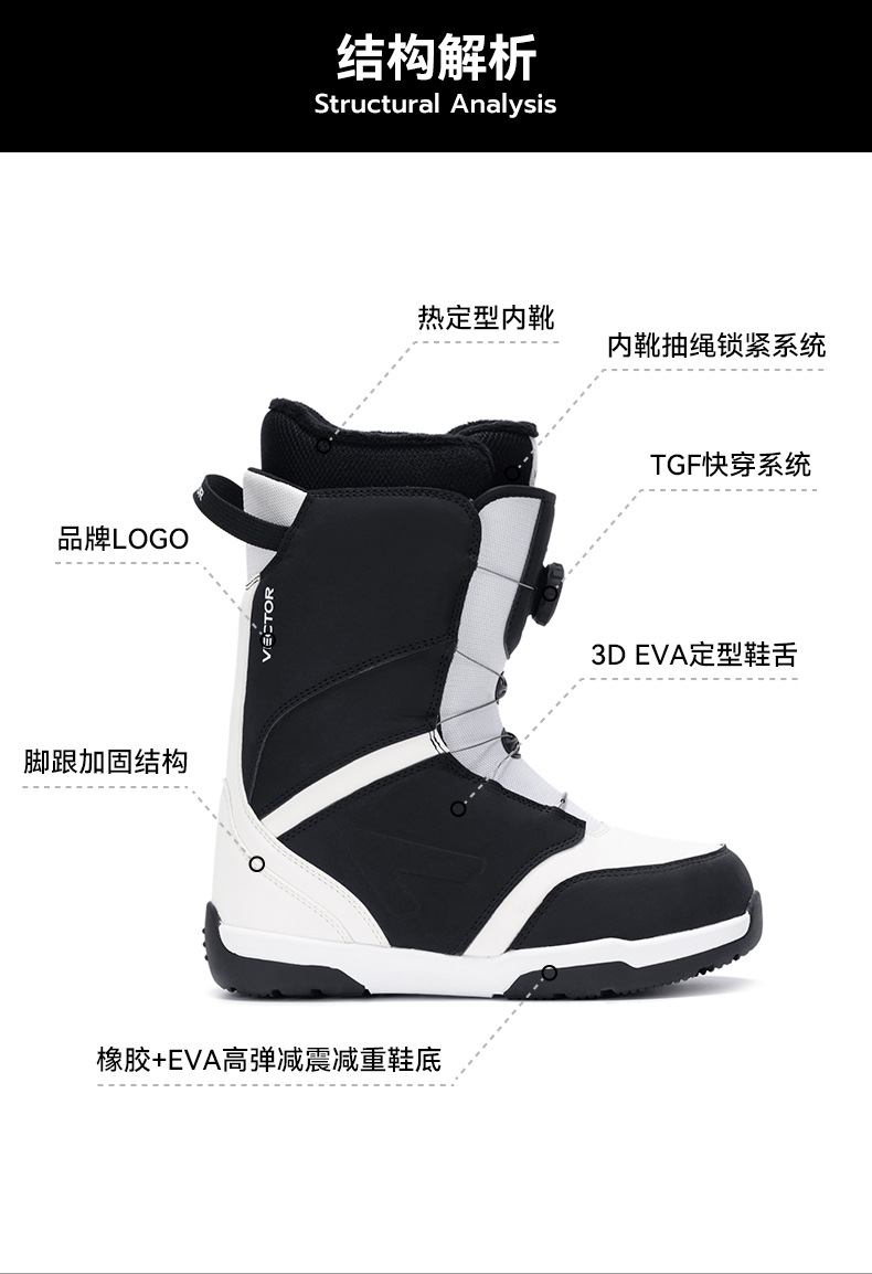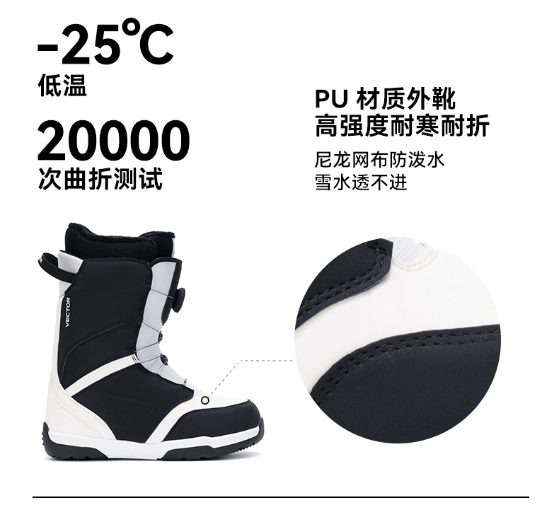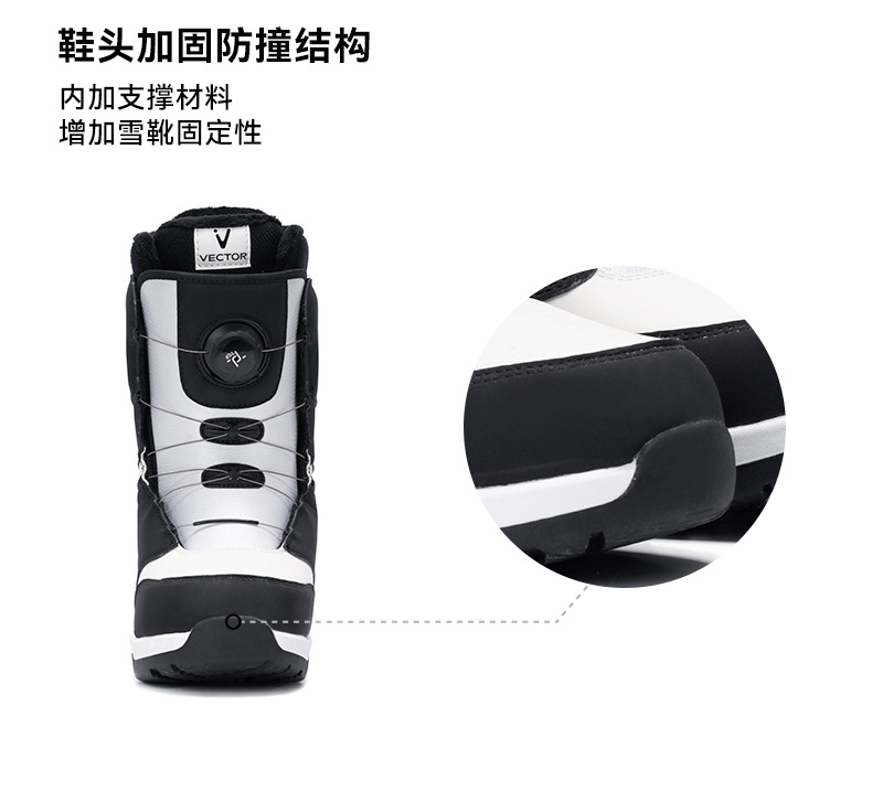 VECTOR играет с новыми противоскользящими, амортизирующими, теплыми и водонепроницаемыми быстросъемными лыжными ботинками, лыжным снаряжением и снегоступами.