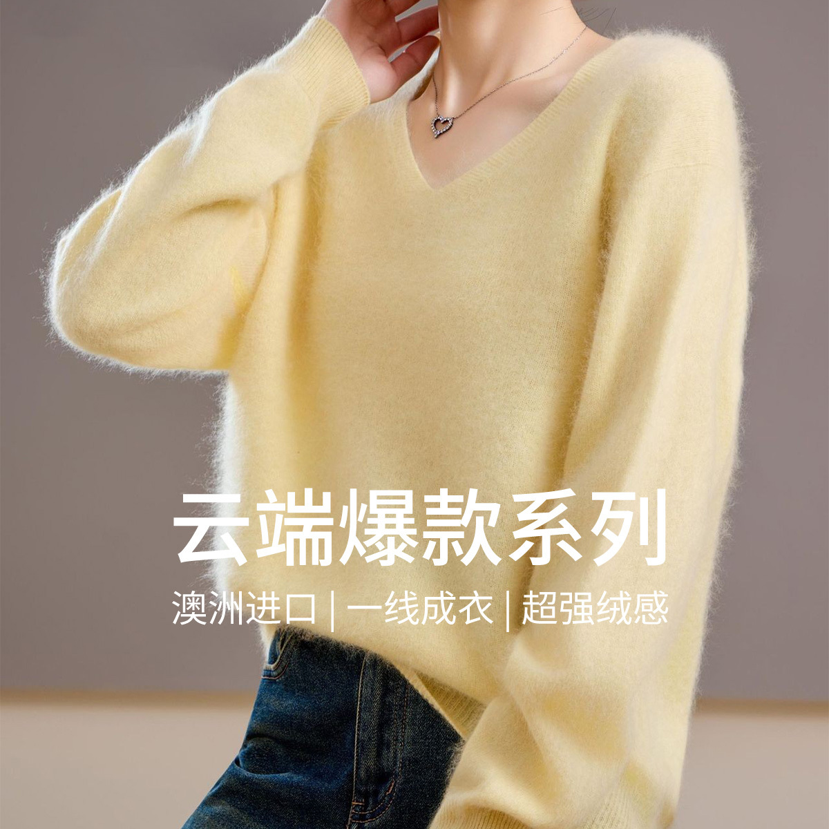 【Wow】Австралийский шерстяной свитер с V-образным вырезом, вязаный на фабрике, из начёсанной шерсти, кашемировый свитер для женщин