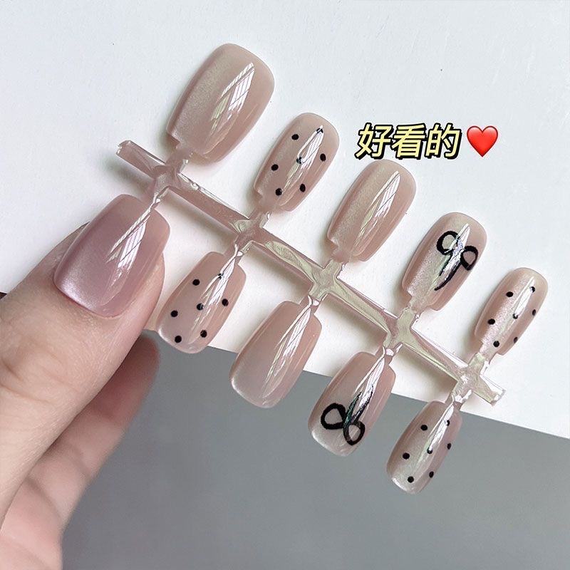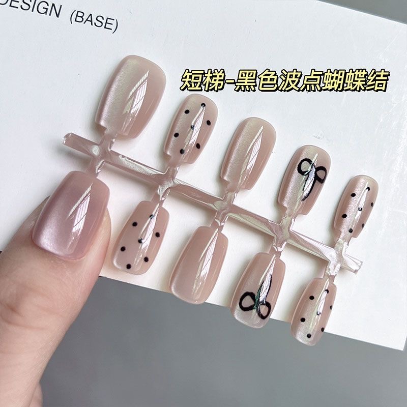 Накладные ногти с бантиком в горошек, кошачий глаз, высококачественная готовая продукция, отбеливающие накладные ногти, короткие, новый стиль, маникюр, съемные накладные ногти