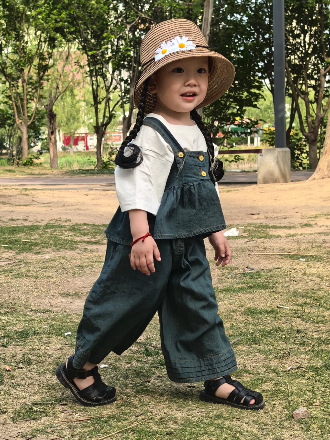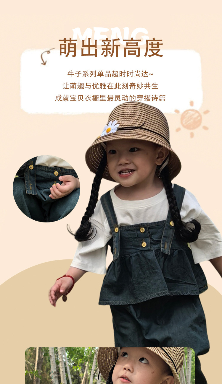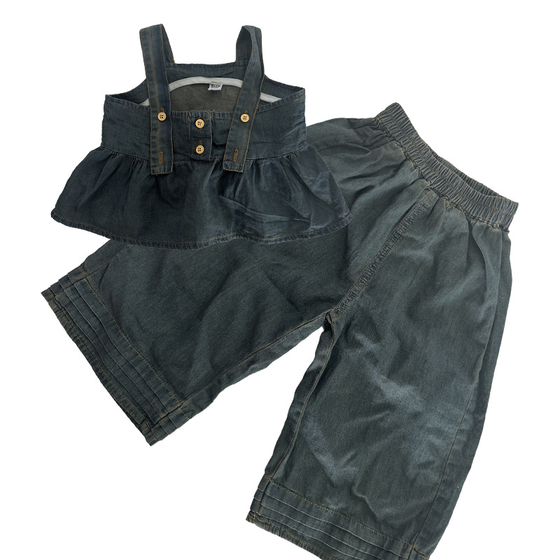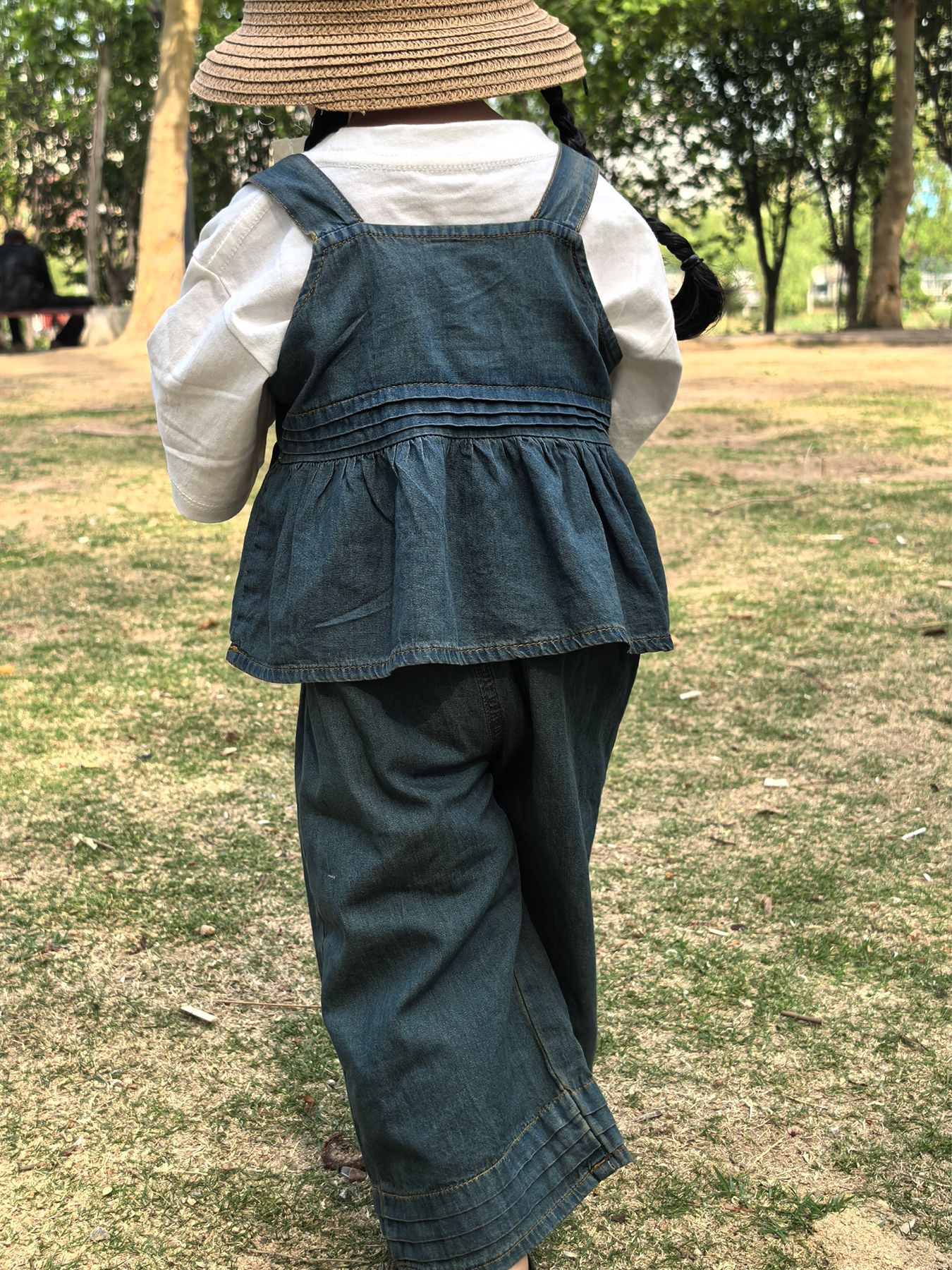 Летний джинсовый комплект из трех предметов для девочек 2025, новый детский корейский стиль, майка, широкие брюки, модный