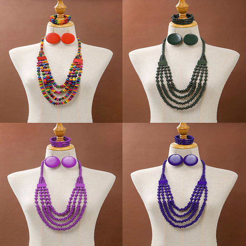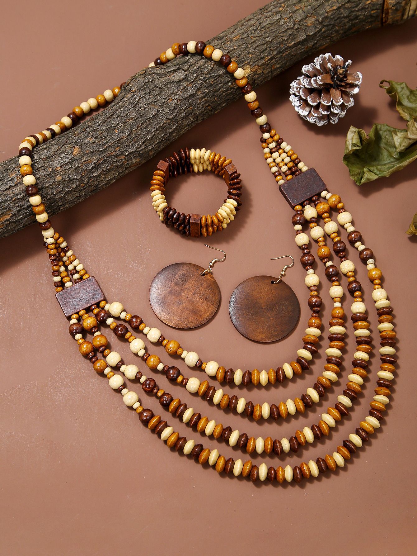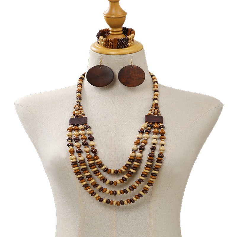 Многослойное бисерное ожерелье в этническом ретро-стиле из деревянных бусин, бохо-ожерелье, длинное ожерелье, аксессуар для одежды, цепочка для свитера