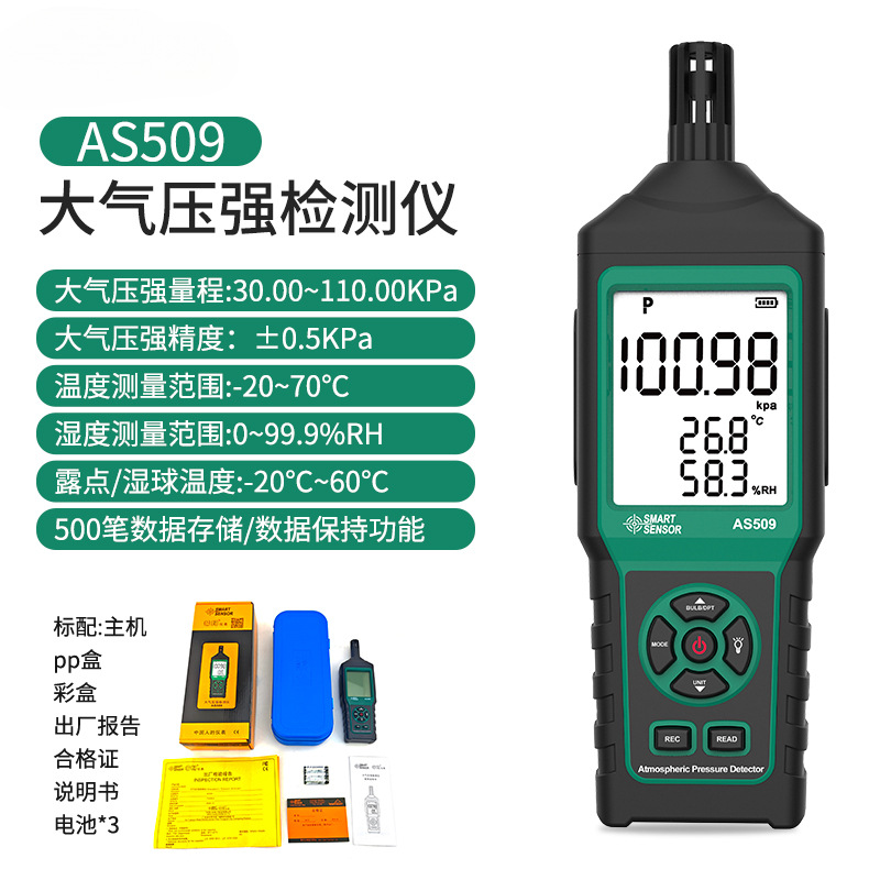 AS509 Манометр атмосферного давления, регистратор давления, температура, влажность, точка росы, влажная лампа, электронный атмосферный барометр