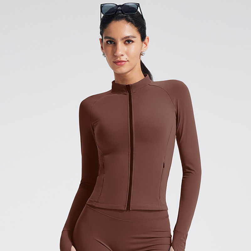 Европейская и американская высококачественная одежда для йоги, женская куртка с воротником-стойкой, спортивный топ для похудения, куртка на молнии с длинными рукавами, одежда для велоспорта и фитнеса