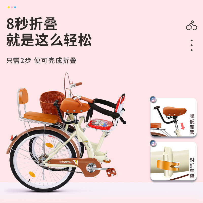Складной велосипед для родителей и детей с ребенком, велосипед для матери и ребенка с ребенком, трехместный велосипед для прогулок с ребенком, школьная подача и вывоз детей, взрослых женщин