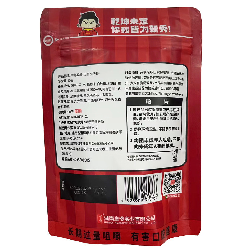 Zhang Xinfa Betel Nut Companion Huangye Xiangtan Betel Nut Tobacco Fruit Одиночная упаковка из 15 штук Huangye Xylitol Betel Nut Tobacco Fruit.